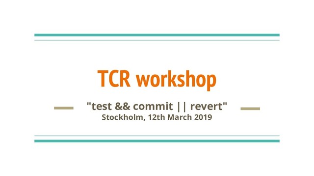 && commit || revert) 3. Presentation of the kata: Fibonacci 4. First round to try… go!! 5. Second round to try… go!! 6. Opinions and feedback 7. Some downsides of TCR 8. Final recap 9. Interesting links 10. Dinner and networking!