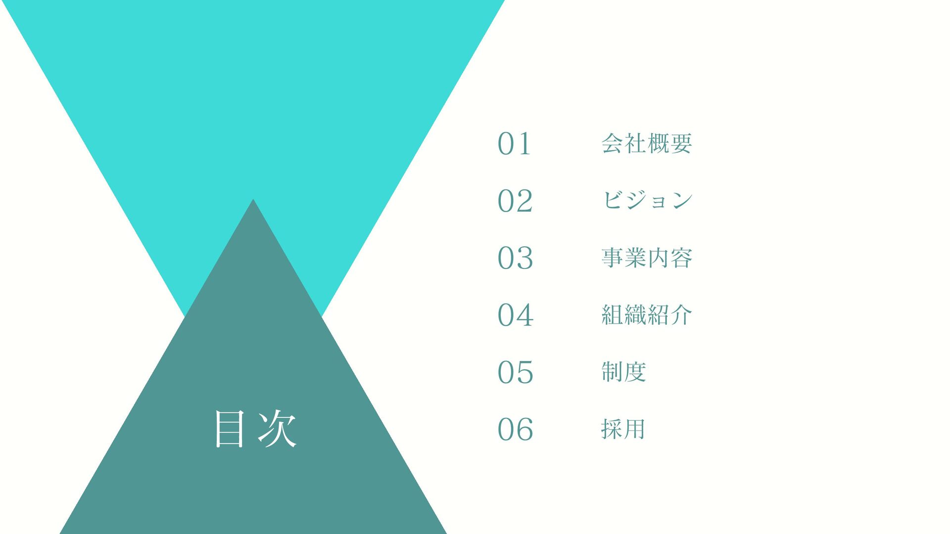 目次 01 会社概要 ビジョン 02 事業内容 03 組織紹介 04 制度