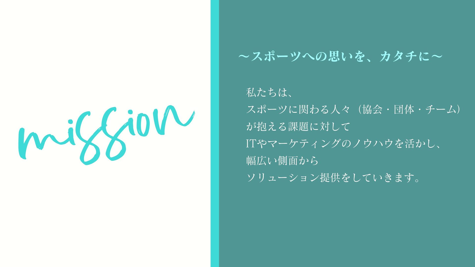 私たちは、 スポーツに関わる人々(協会・団体・チーム) が抱える課題に対して ITやマーケティングのノウハウを活かし、 幅広い側面から ソリューション提供をしていきます。 mission ~スポーツへの思いを、カタチに~