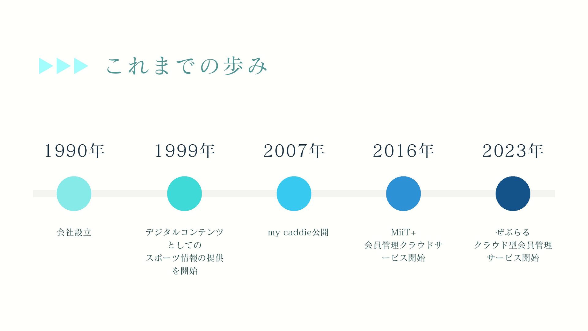 会社設立 1990年 デジタルコンテンツ としての スポーツ情報の提供 を開始 1999年 my caddie公開 2007年