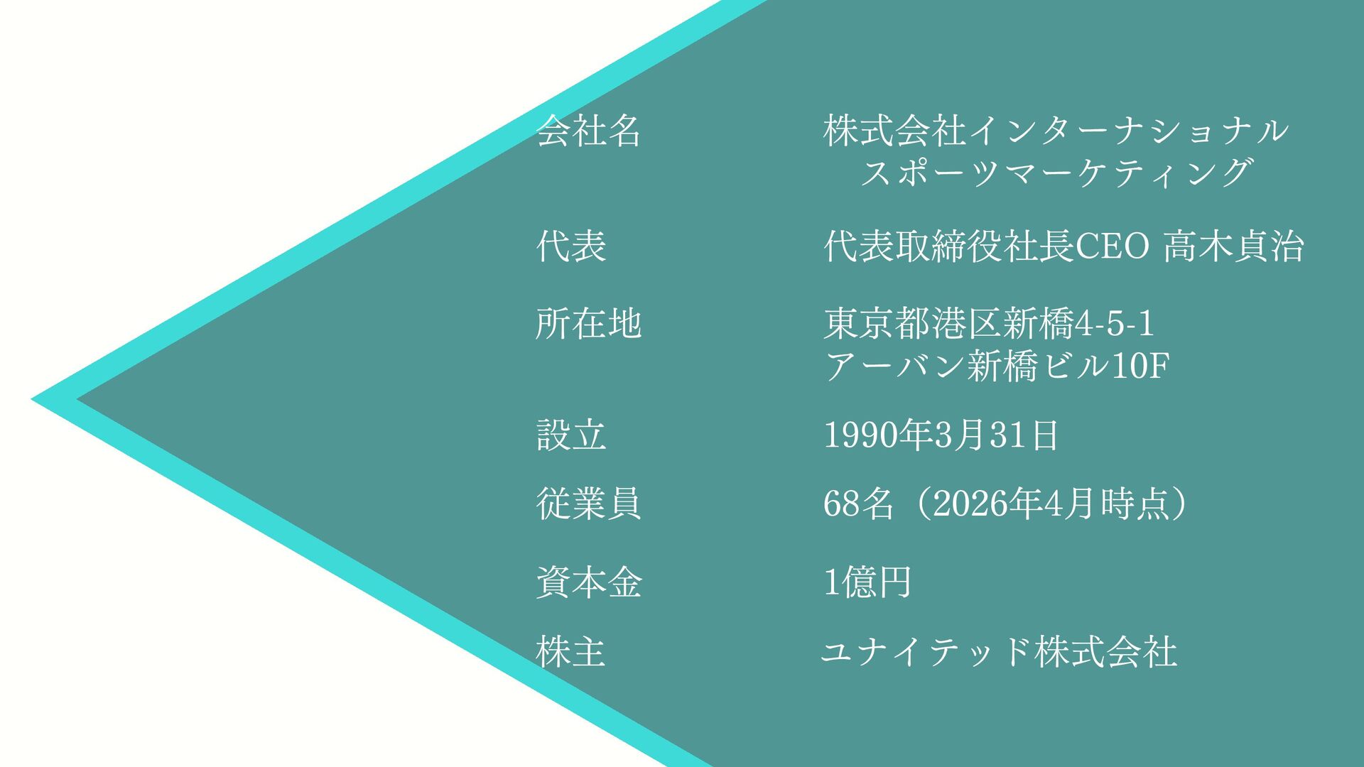 株式会社インターナショナル スポーツマーケティング 会社名 代表 代表取締役社長CEO 高木貞治 設立 1990年3月31日 従業員 68名(2026年4月時点)