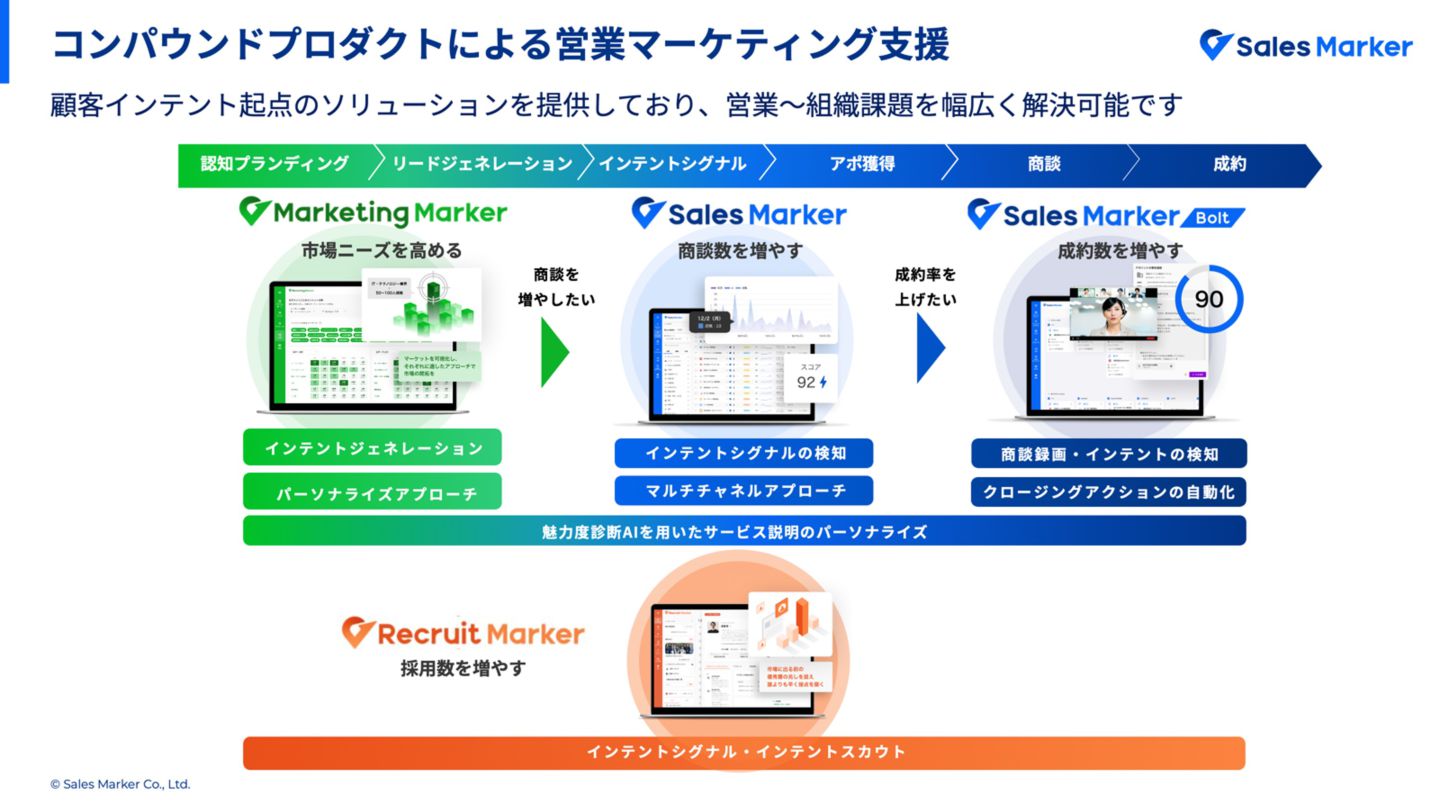 2. © Sales Marker Co., Ltd. 3 コンパウンドプロダクトによる営業マーケティング⽀援 成約 商談 アポ獲得