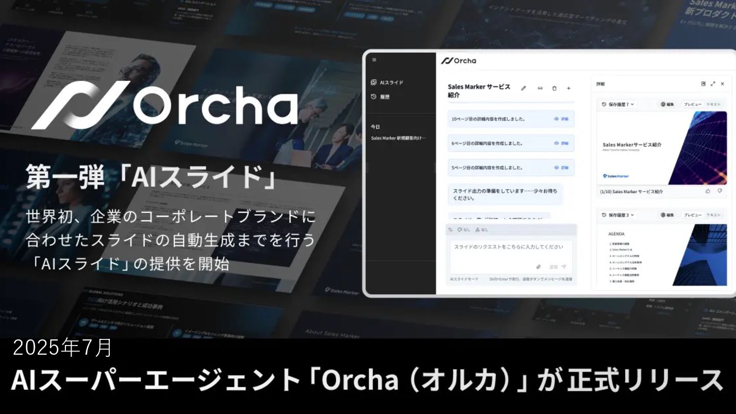 3. © Sales Marker Co., Ltd. 6 Orchaが⽬指す世界 ・第⼀弾:AI スライド ・第⼆弾:AI