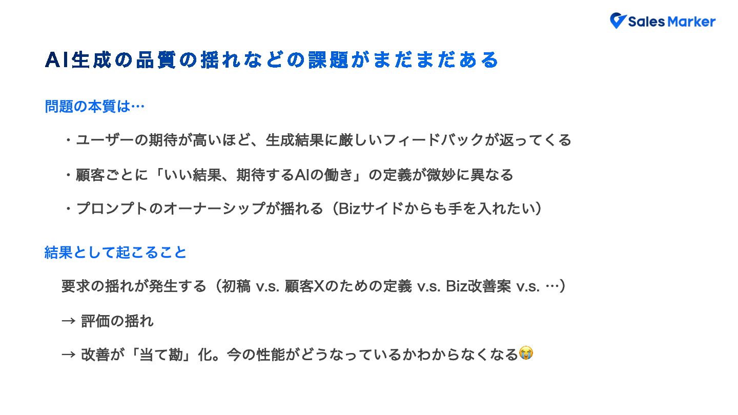 プロンプトはBizサイドも手を入れてしまうことがありオーナーシップが揺れ、結局いま性能はどんなだっけ?と迷子になってしまう。