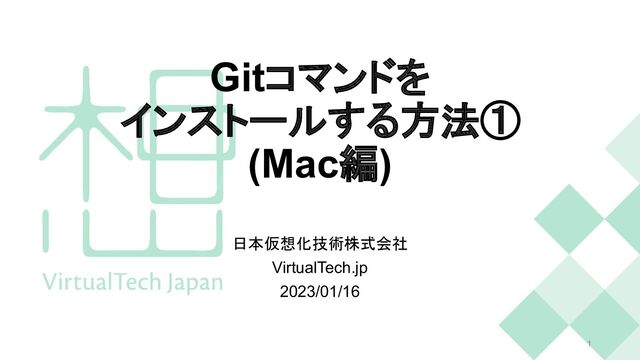 Gitコマンドを インストールする方法① (Mac編) 日本仮想化技術株式会社 VirtualTech.jp 2023/01/16 1