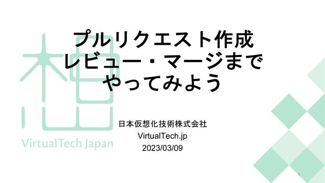 プルリクエスト作成 レビュー・マージまで やってみよう 日本仮想化技術株式会社 VirtualTech.jp 2023/03/09 1