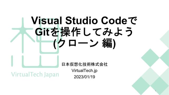 Visual Studio Codeで Gitを操作してみよう (クローン 編) 日本仮想化技術株式会社 VirtualTech.jp 2023/01/19 1