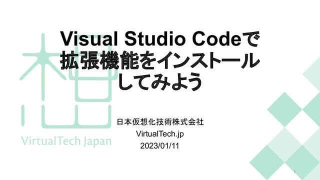 日本仮想化技術株式会社 VirtualTech.jp 2023/01/11 Visual Studio Codeで 拡張機能をインストール してみよう 1