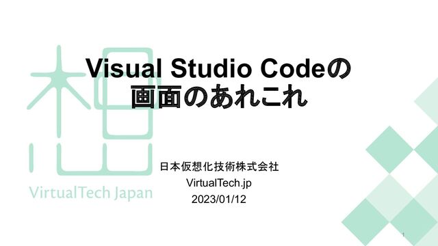 Visual Studio Codeの 画面のあれこれ 日本仮想化技術株式会社 VirtualTech.jp 2023/01/12 1