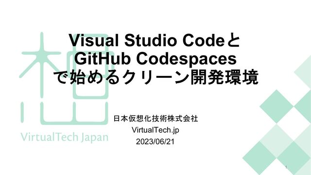 Visual Studio Codeと GitHub Codespaces で始めるクリーン開発環境 日本仮想化技術株式会社 VirtualTech.jp 2023/06/21 1