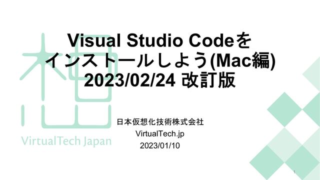 日本仮想化技術株式会社 VirtualTech.jp 2023/01/10 1 Visual Studio Codeを インストールしよう(Mac編) 2023/02/24 改訂版