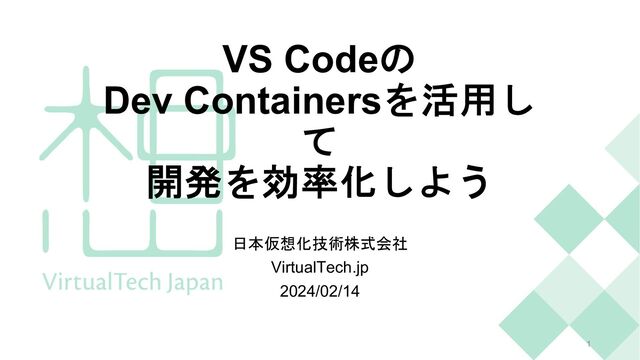 VS Codeの Dev Containersを活用し て 開発を効率化しよう 日本仮想化技術株式会社 VirtualTech.jp 2024/02/14 1