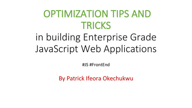 ? According to Wikipedia: Defensive programming is a form of defensive design intended to ensure the continuing function of a piece of software under unforeseen circumstances especially surprise type coersion/conversion. • Liniting/Static Analysis (JSLint, Flow, TypeScript) • Wrap and Encapsulate every JS code (IIFE) • Immutability matters (but not for every variable, use constants when you need to) • Assertions (defending against type errors) • Test your defenses in your testing phase