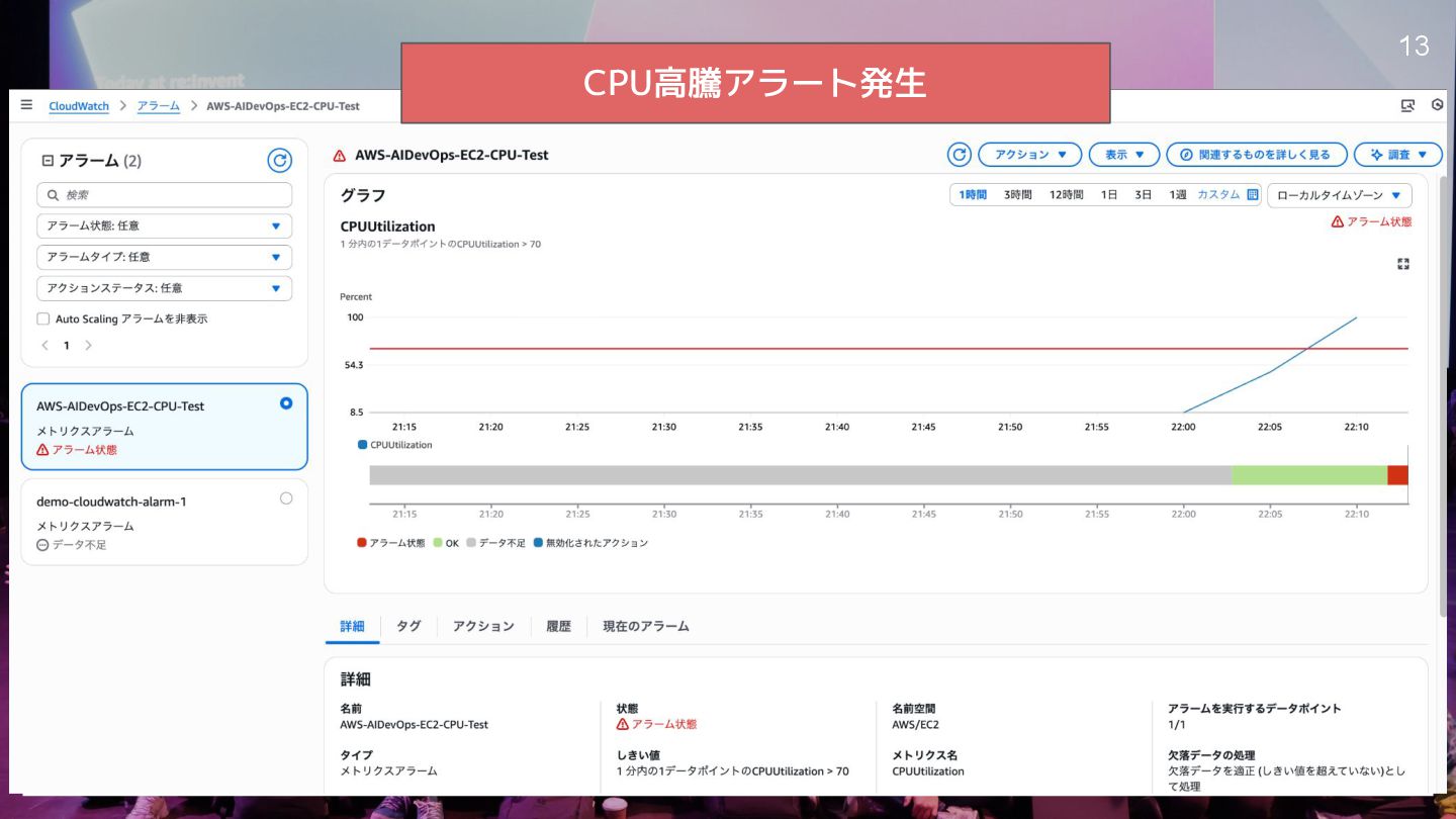 12 EC2 CloudWatch Alarm DevOpsAgnet CPU高騰アラート発生 調査・分析・改善案