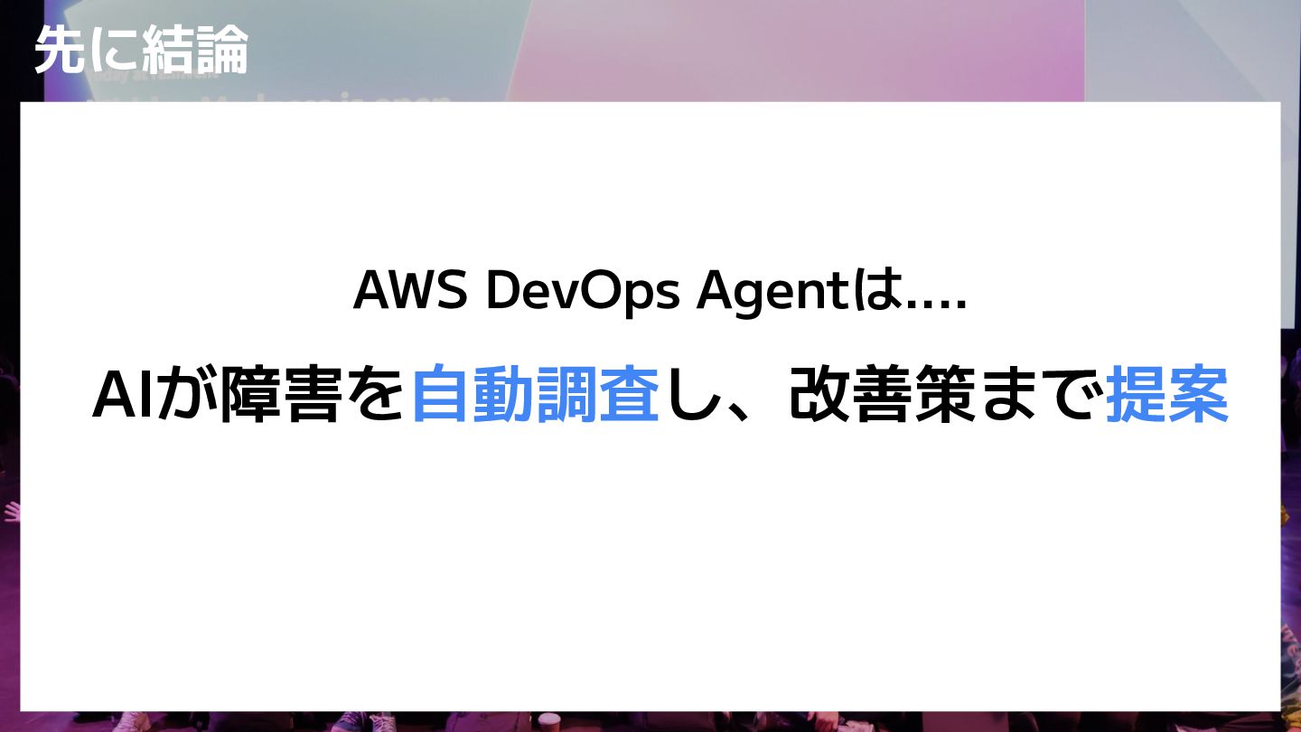 先に結論 AWS DevOps Agentは.... AIが障害を自動調査し、改善策まで提案