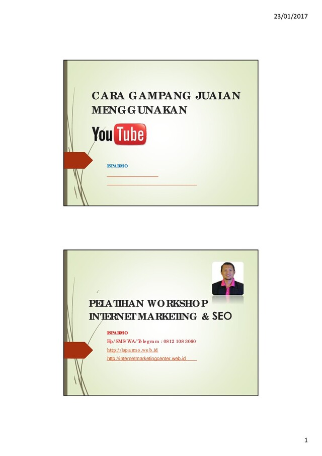 Gratisan Hal-hal yang harus disiapkan sebelum mengupload video ke Youtube : 1. Akun email GMAIL. Jika belum punya silahkan buat di www.gmail.com 2. Menyiapkan 10 file foto/gambar (produk) sebagai bahan pembuatan video. 10 www.isparmo.web.id