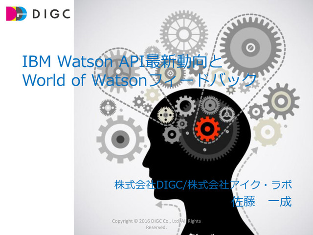 Copyright © 2016 DIGC Co., Ltd. All Rights Reserved. 北海道Watsonユーザー会は