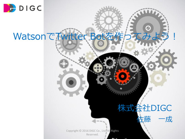 Copyright © 2016 DIGC Co., Ltd. All Rights Reserved. コグニティブTwitterボット