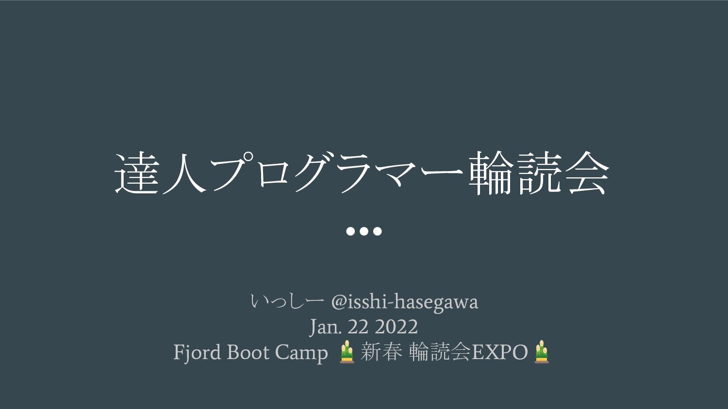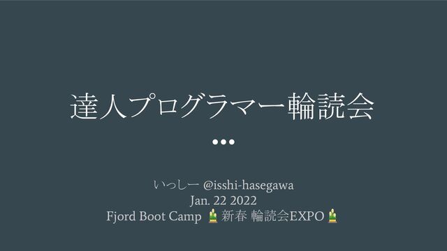 達人プログラマー輪読会 いっしー @isshi-hasegawa Jan. 22 2022 Fjord Boot Camp 🎍新春