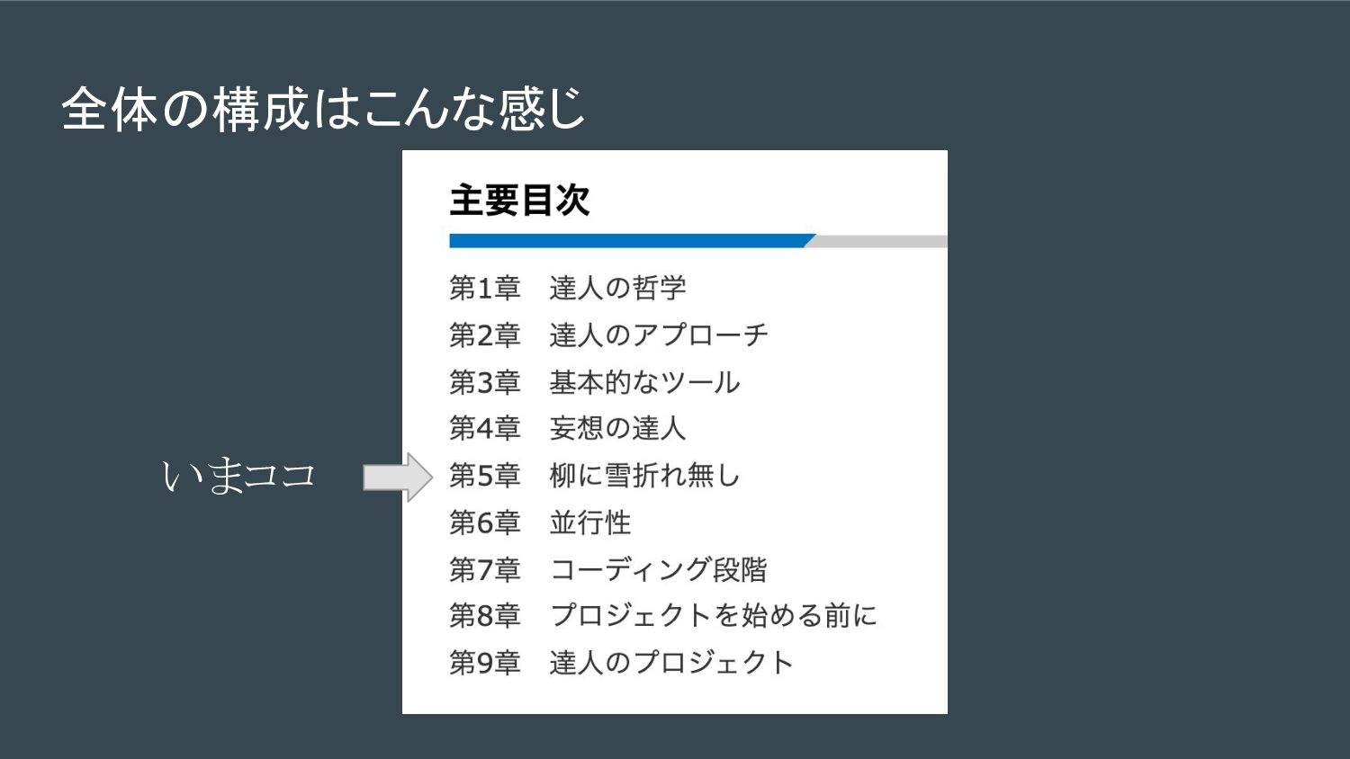 全体の構成はこんな感じ いまココ