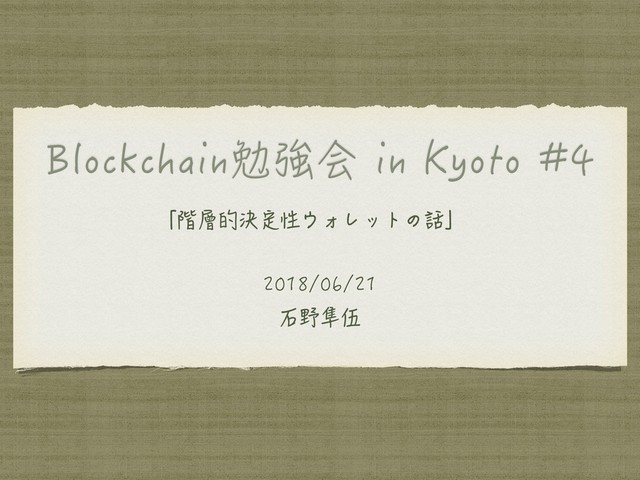 Blockchain勉強会 in Kyoto #4 「階層的決定性ウォレットの話」 2018/06/21 石野隼伍