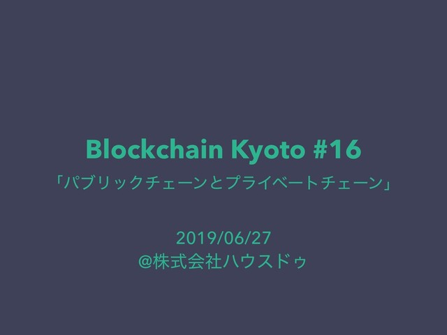 Blockchain Kyoto #16 ʮύϒϦοΫνΣʔϯͱϓϥΠϕʔτνΣʔϯʯ 2019/06/27 @גࣜձࣾϋευΡ