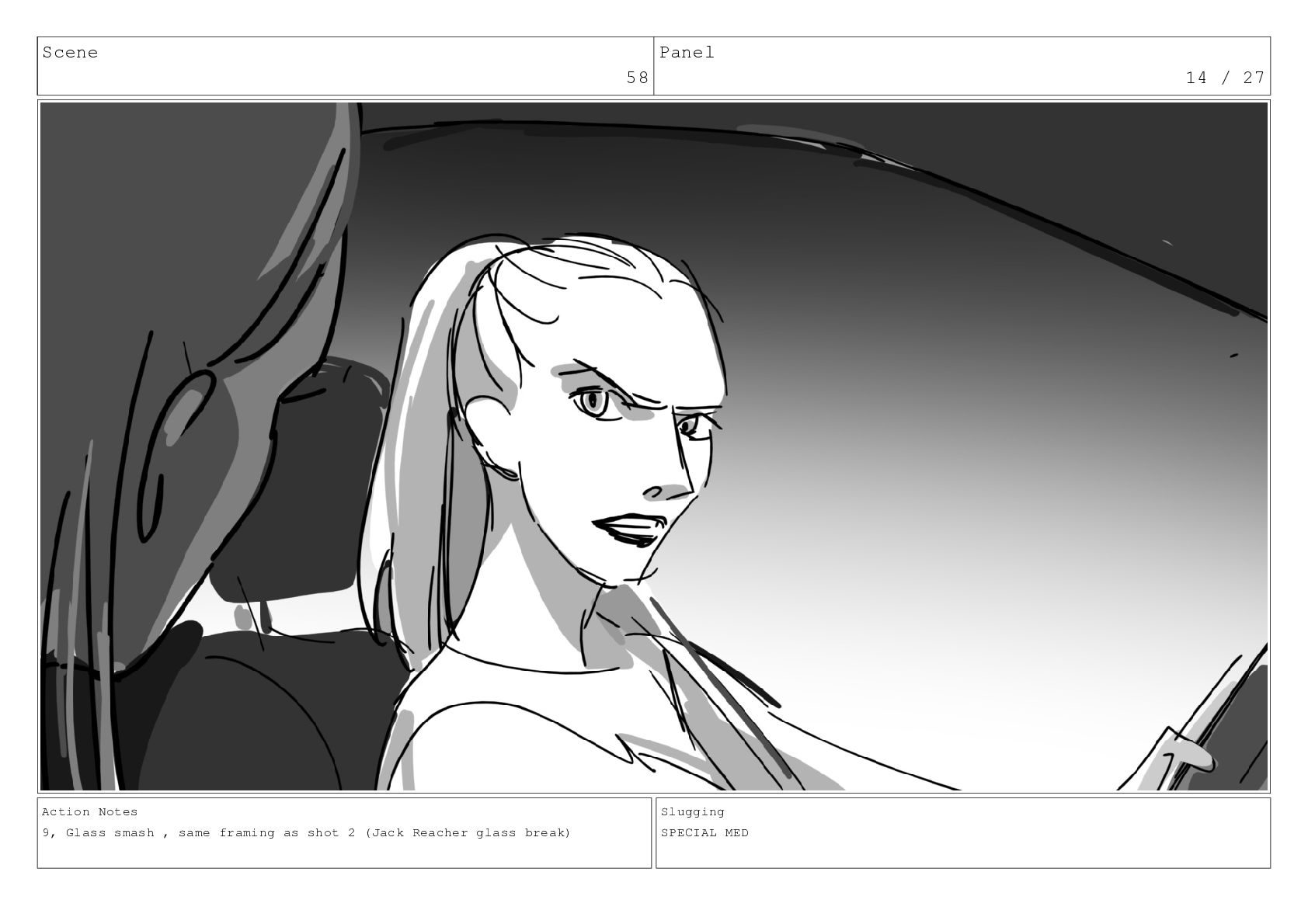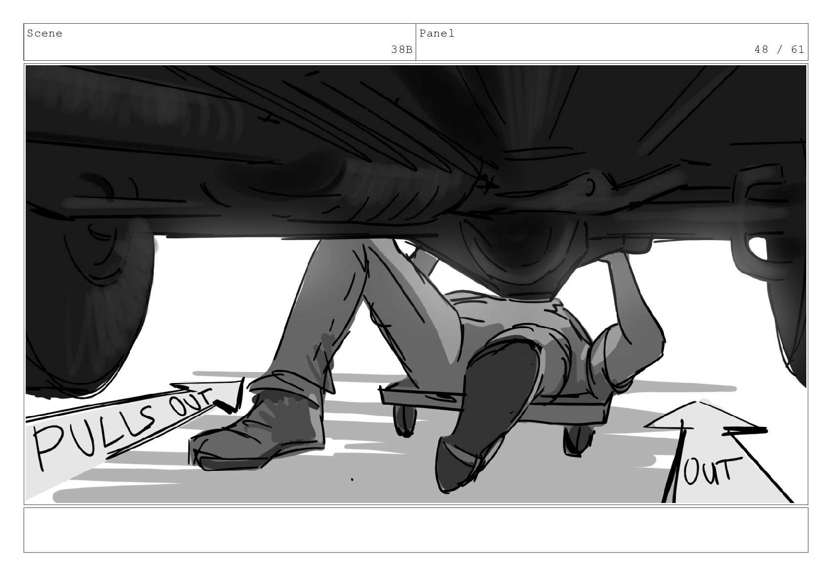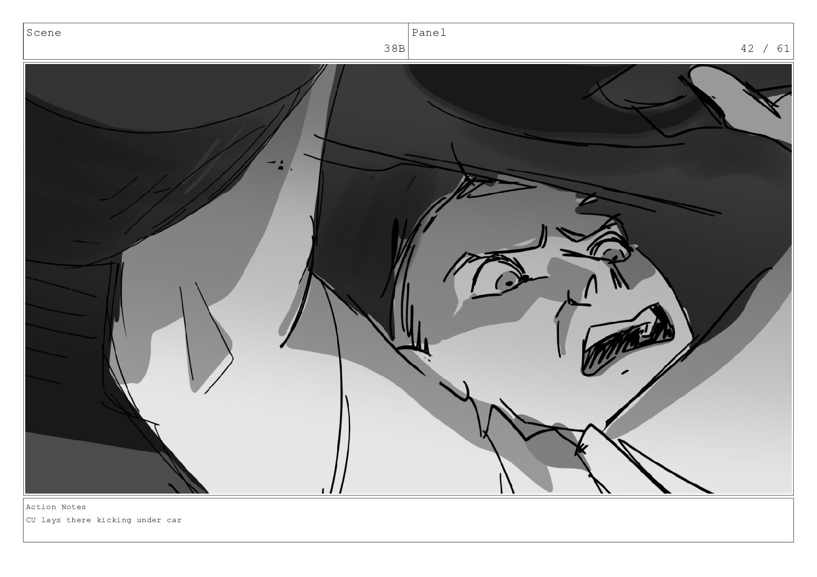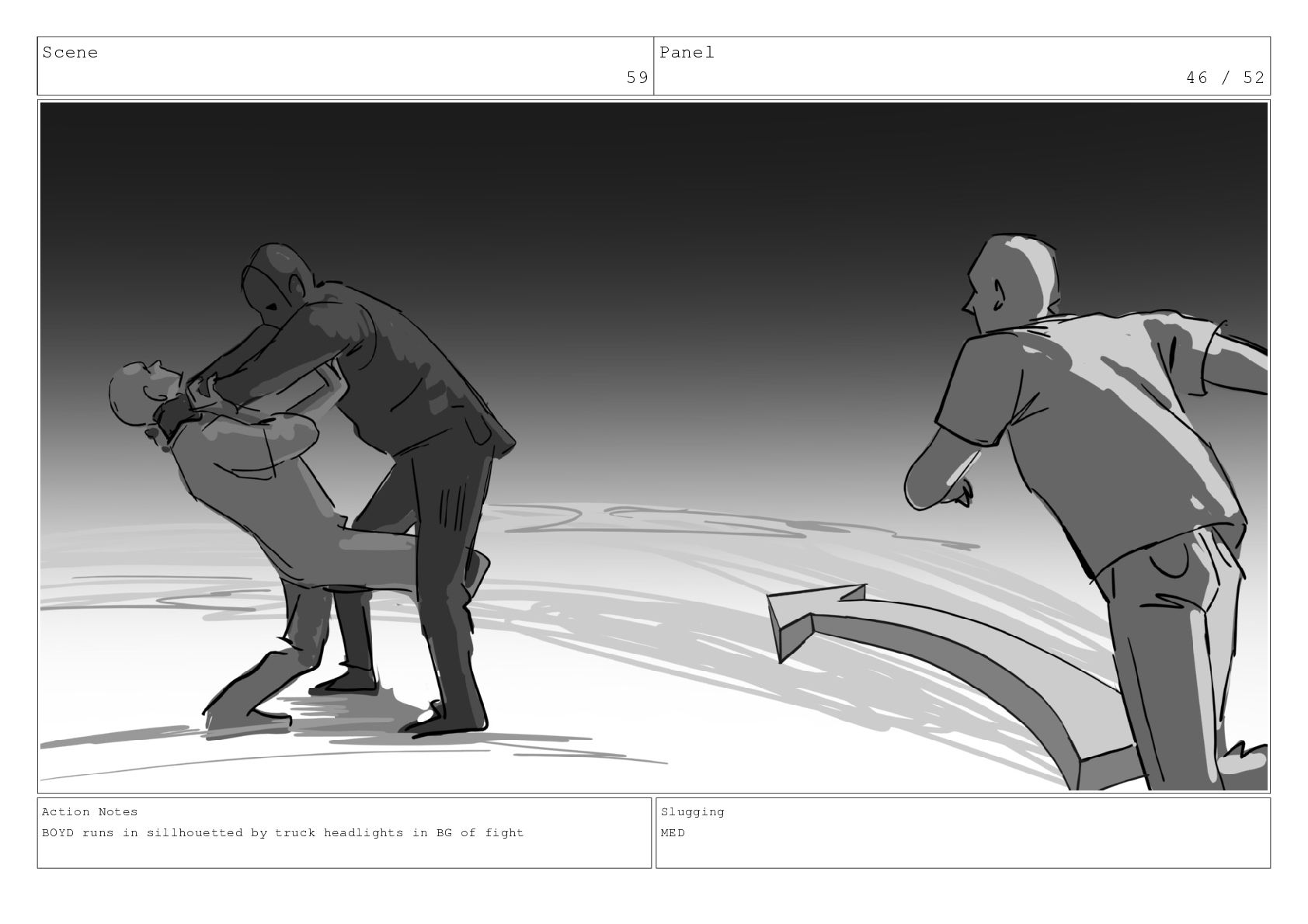 action and swap to a tighter lens after the door closes and again after he wrenches free from the hand. Slugging The camera moves with her as he rolls around under the car, his size changing MS --> CU