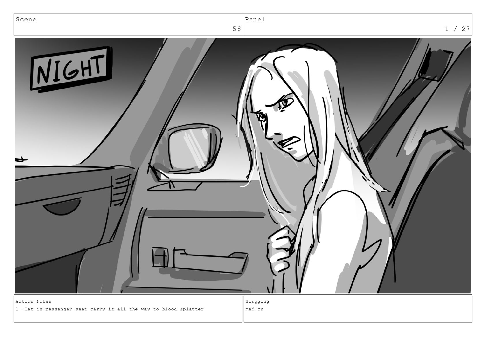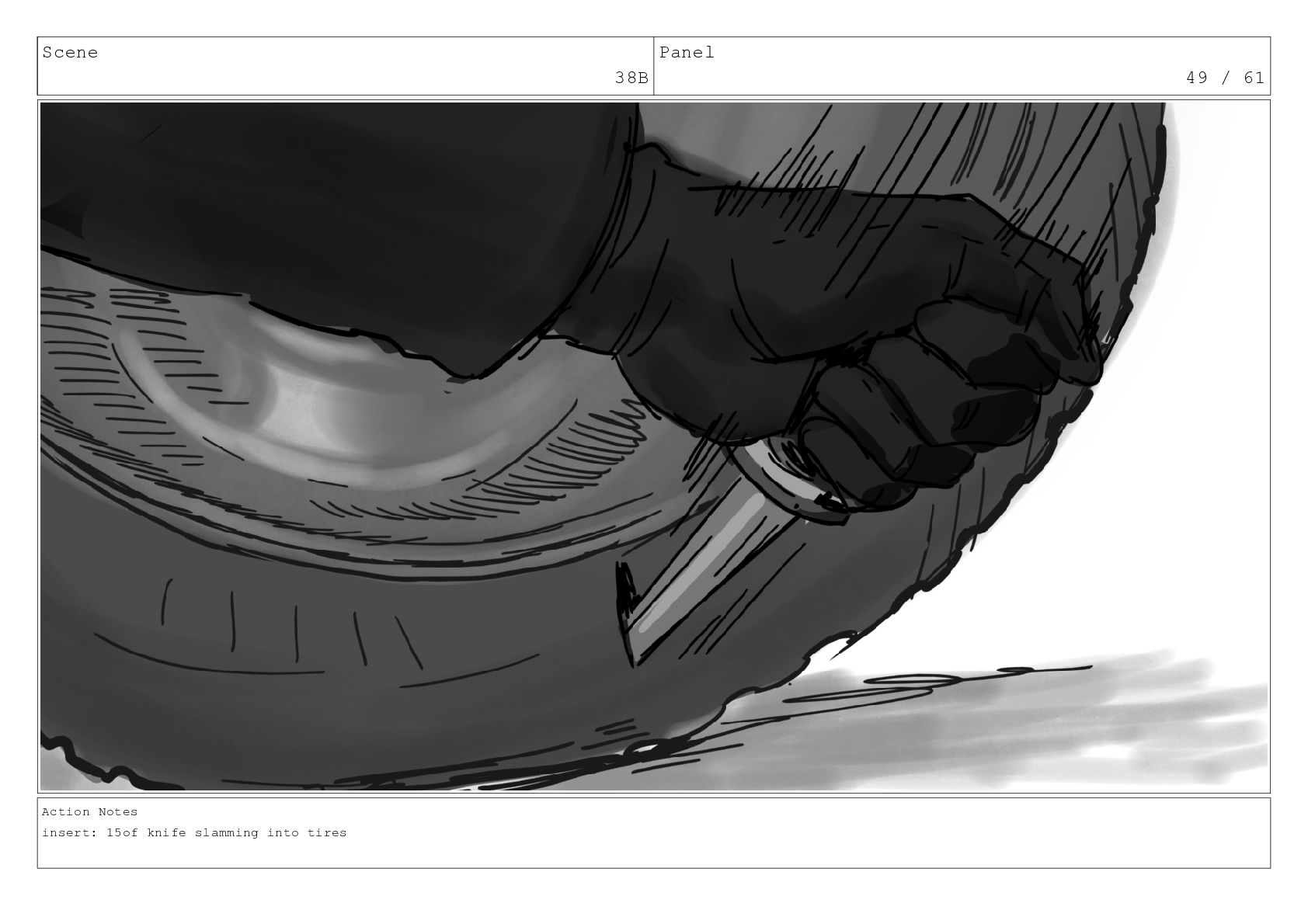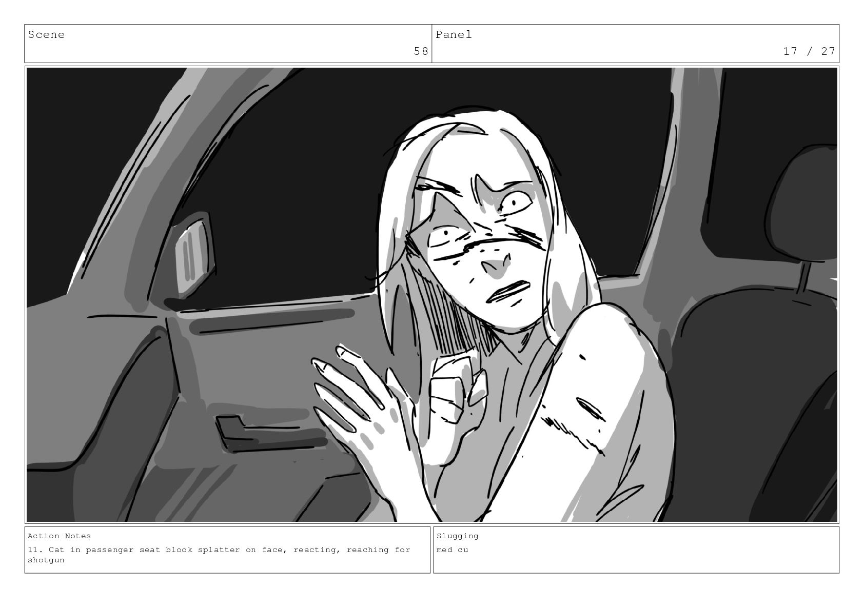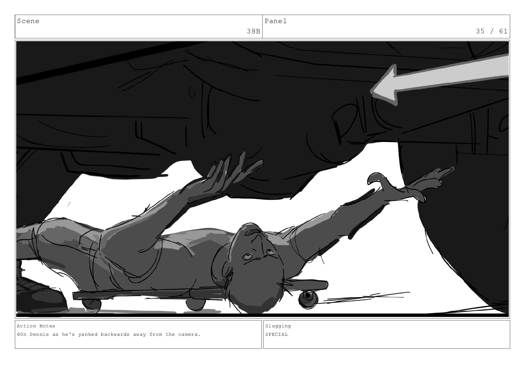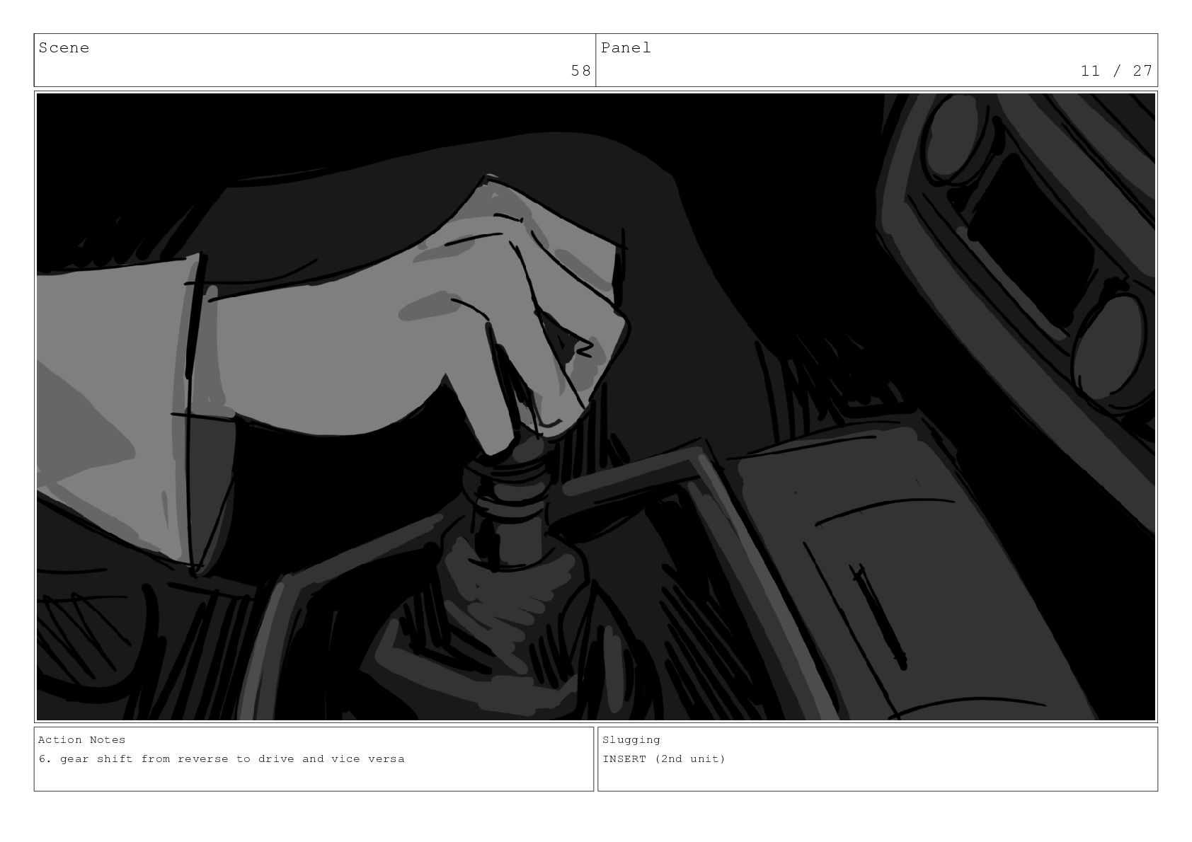 action and swap to a tighter lens after the door closes and again after he wrenches free from the hand. Slugging The camera moves with her as he rolls around under the car, his size changing MS --> CU