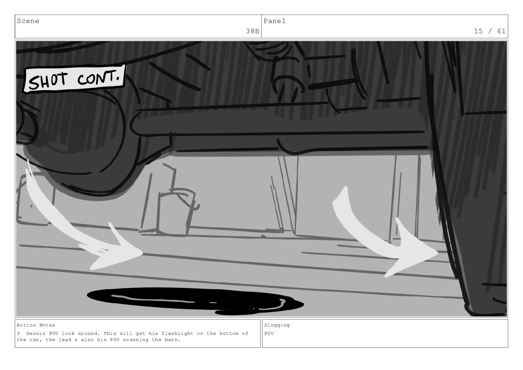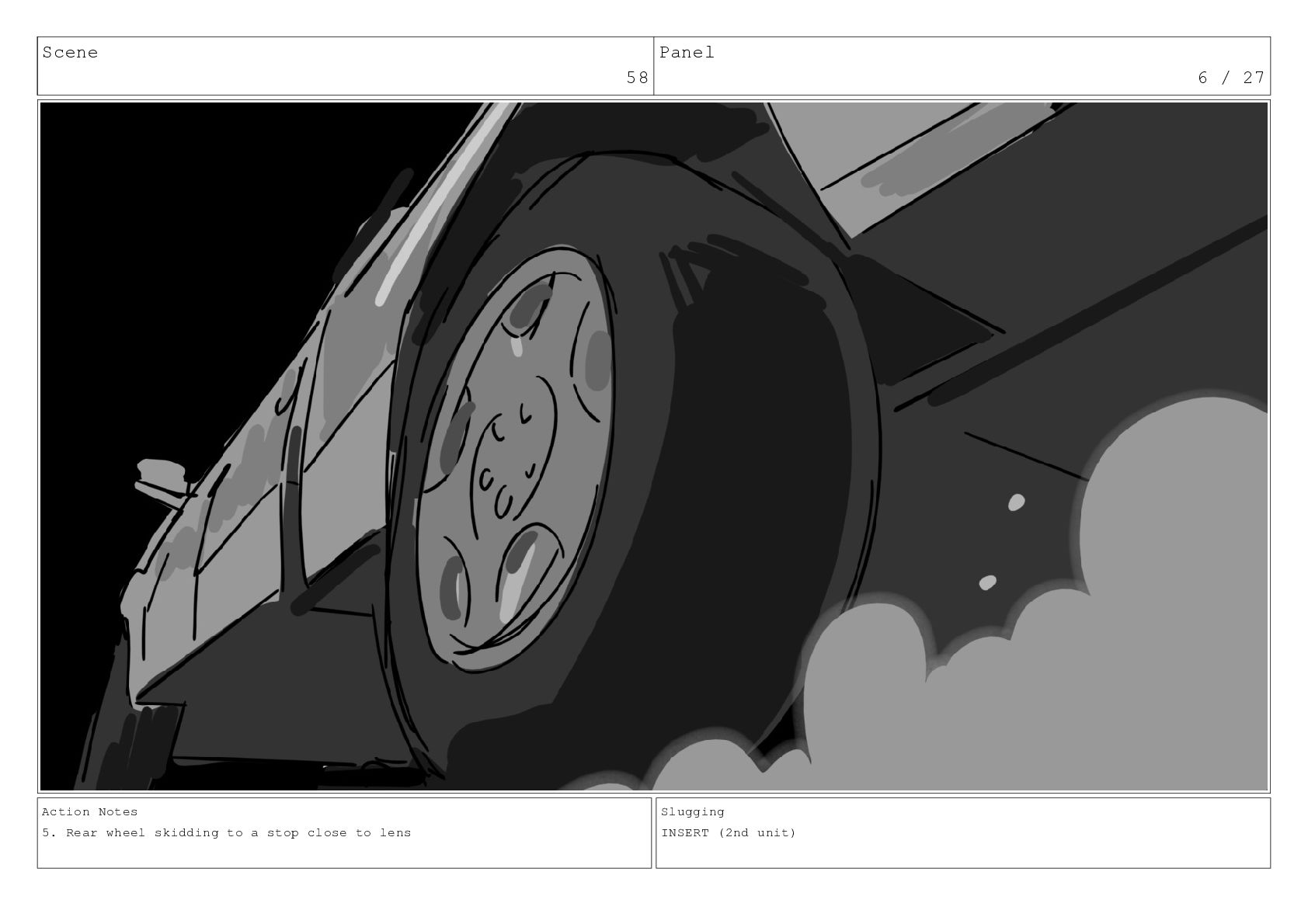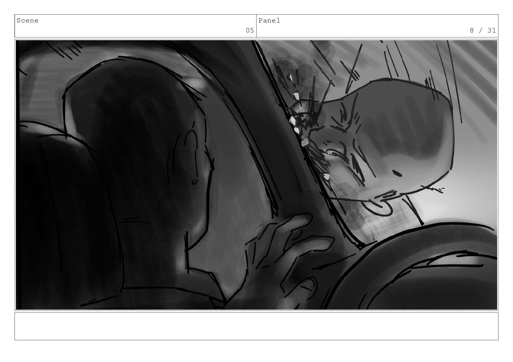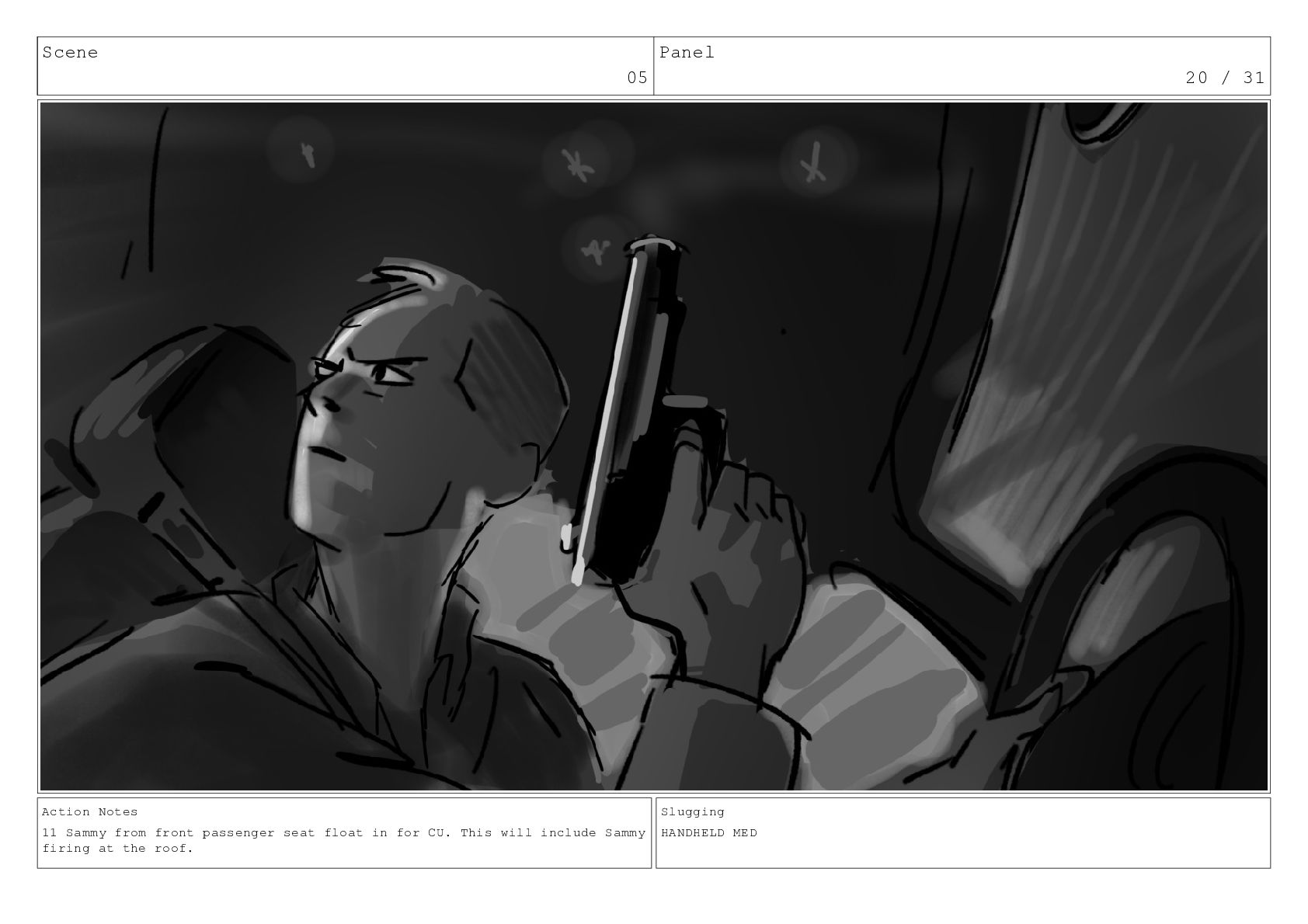 action and swap to a tighter lens after the door closes and again after he wrenches free from the hand. Slugging The camera moves with her as he rolls around under the car, his size changing MS --> CU