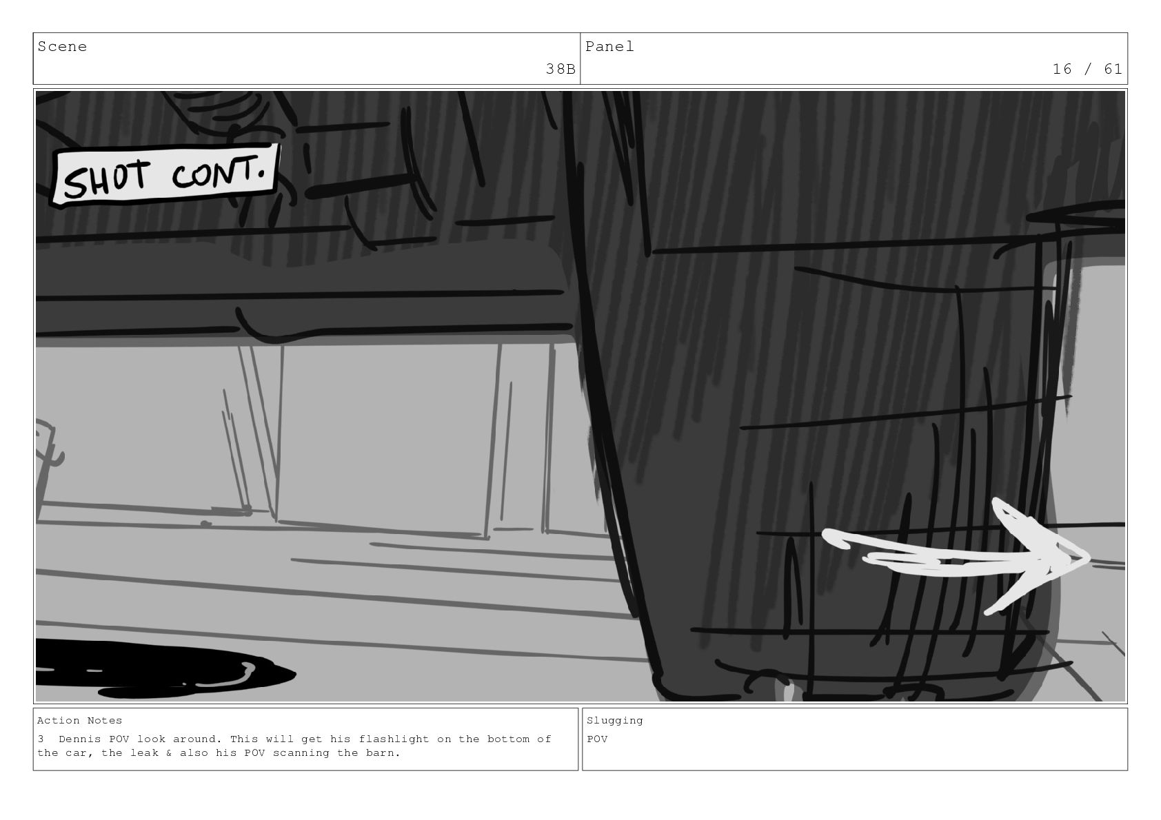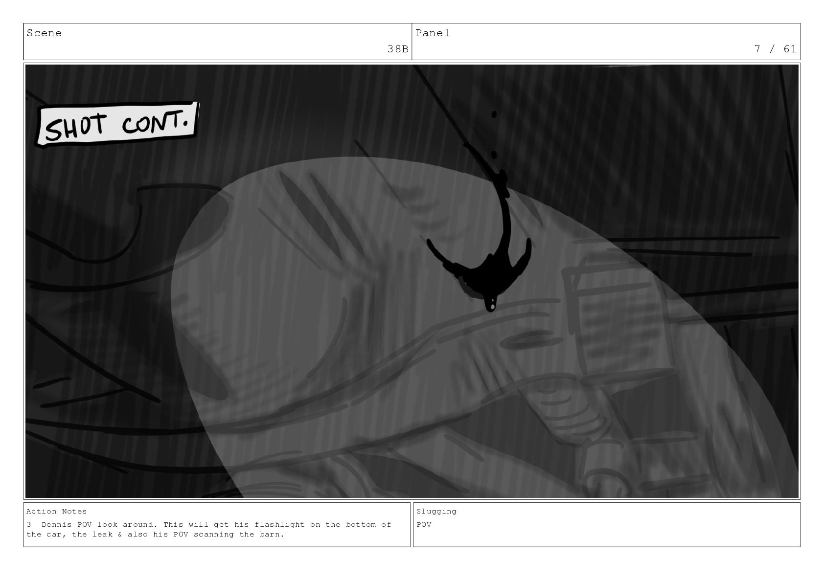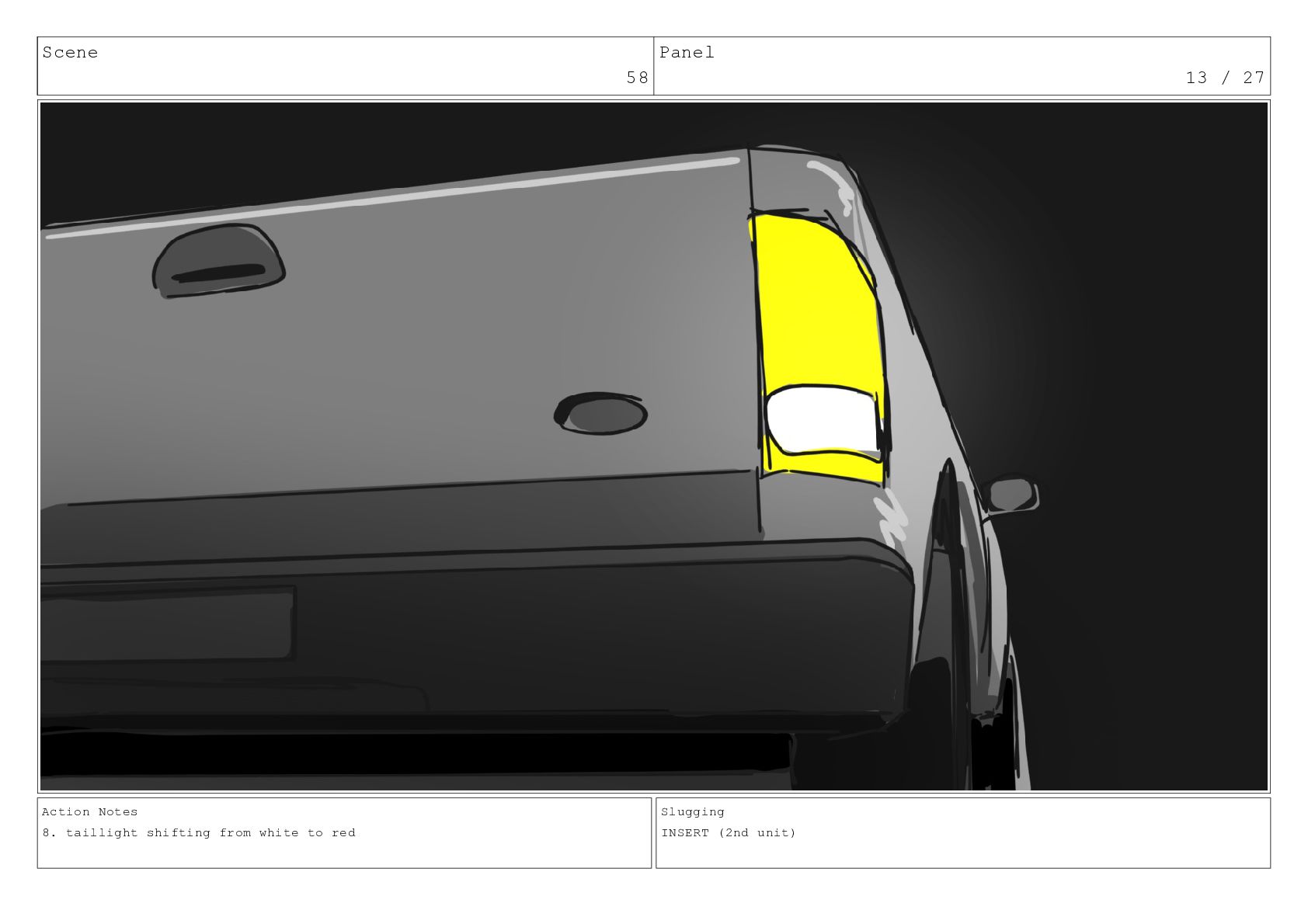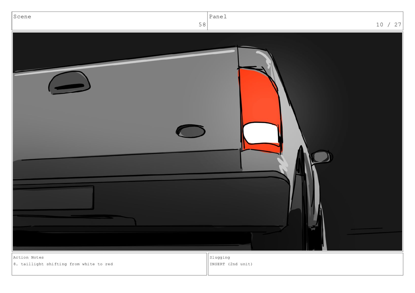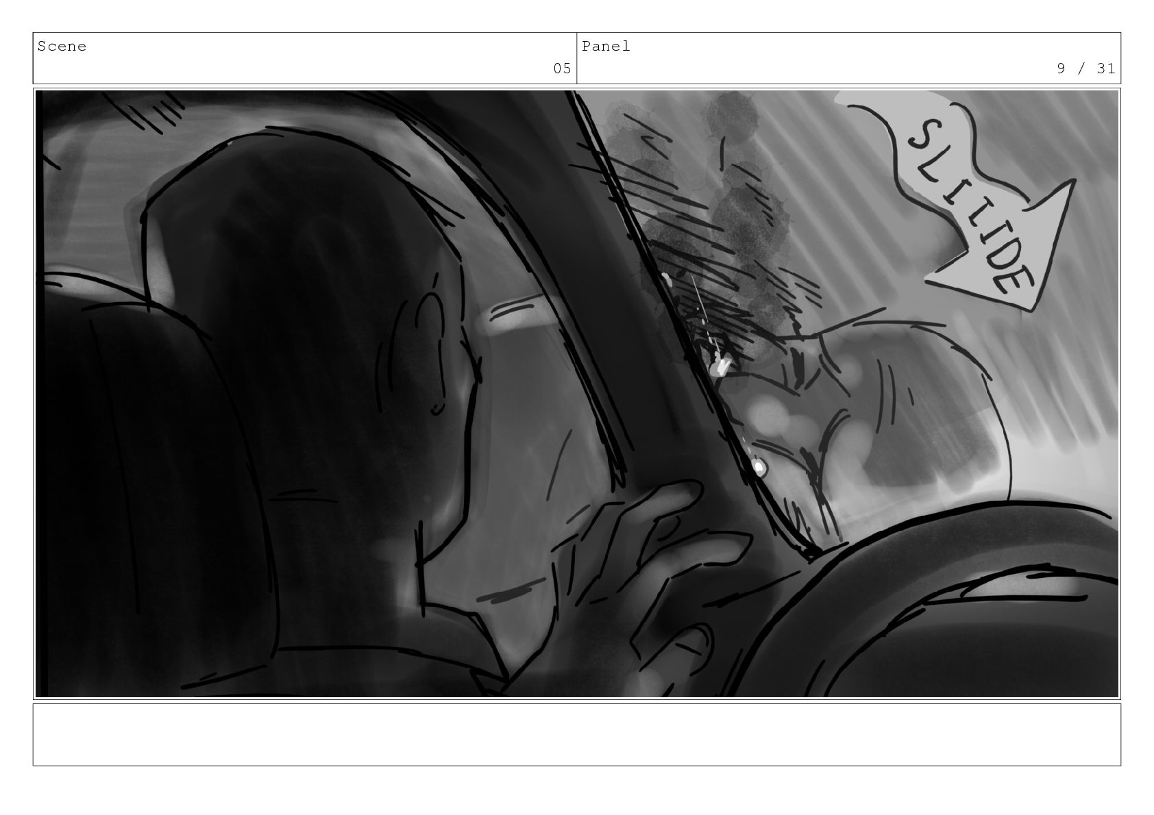 action and swap to a tighter lens after the door closes and again after he wrenches free from the hand. Slugging The camera moves with her as he rolls around under the car, his size changing MS --> CU