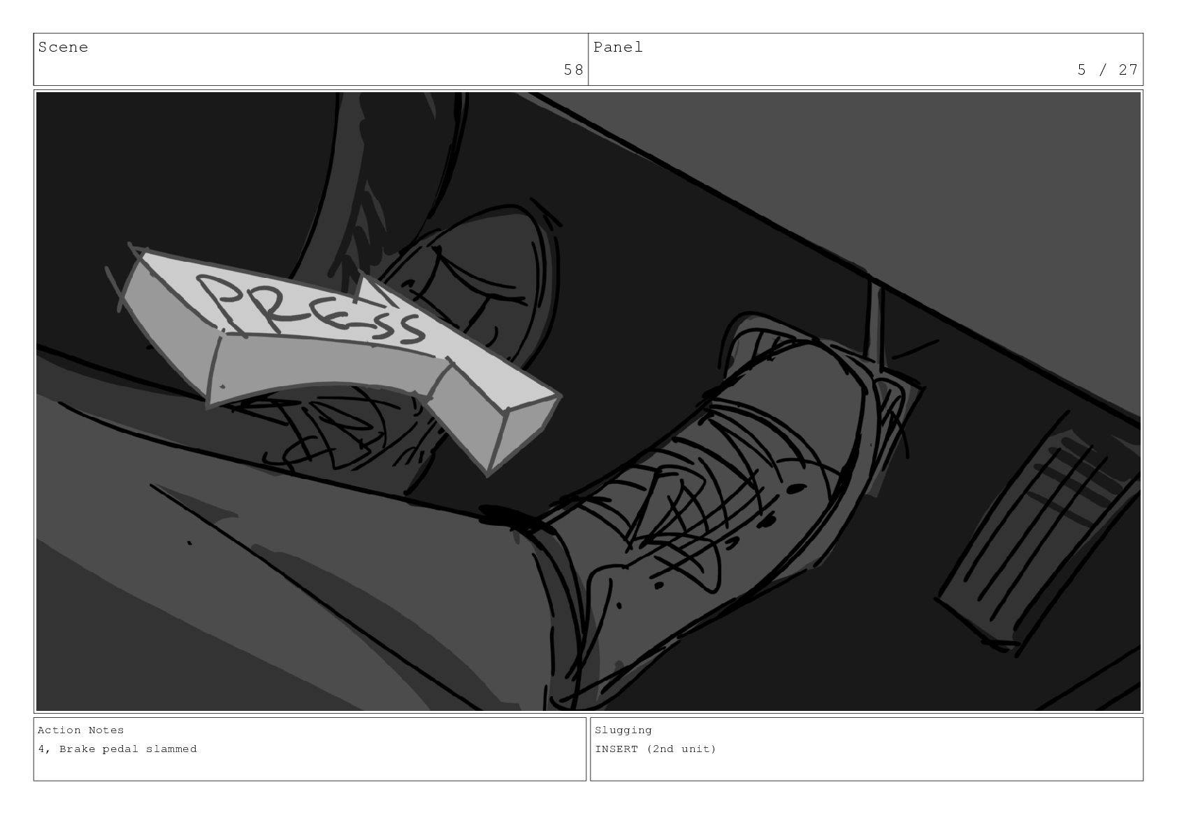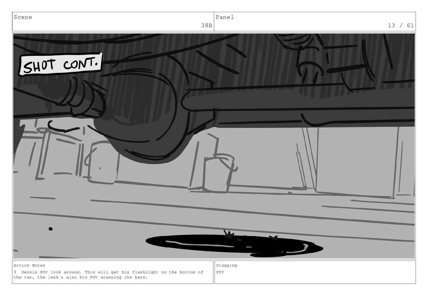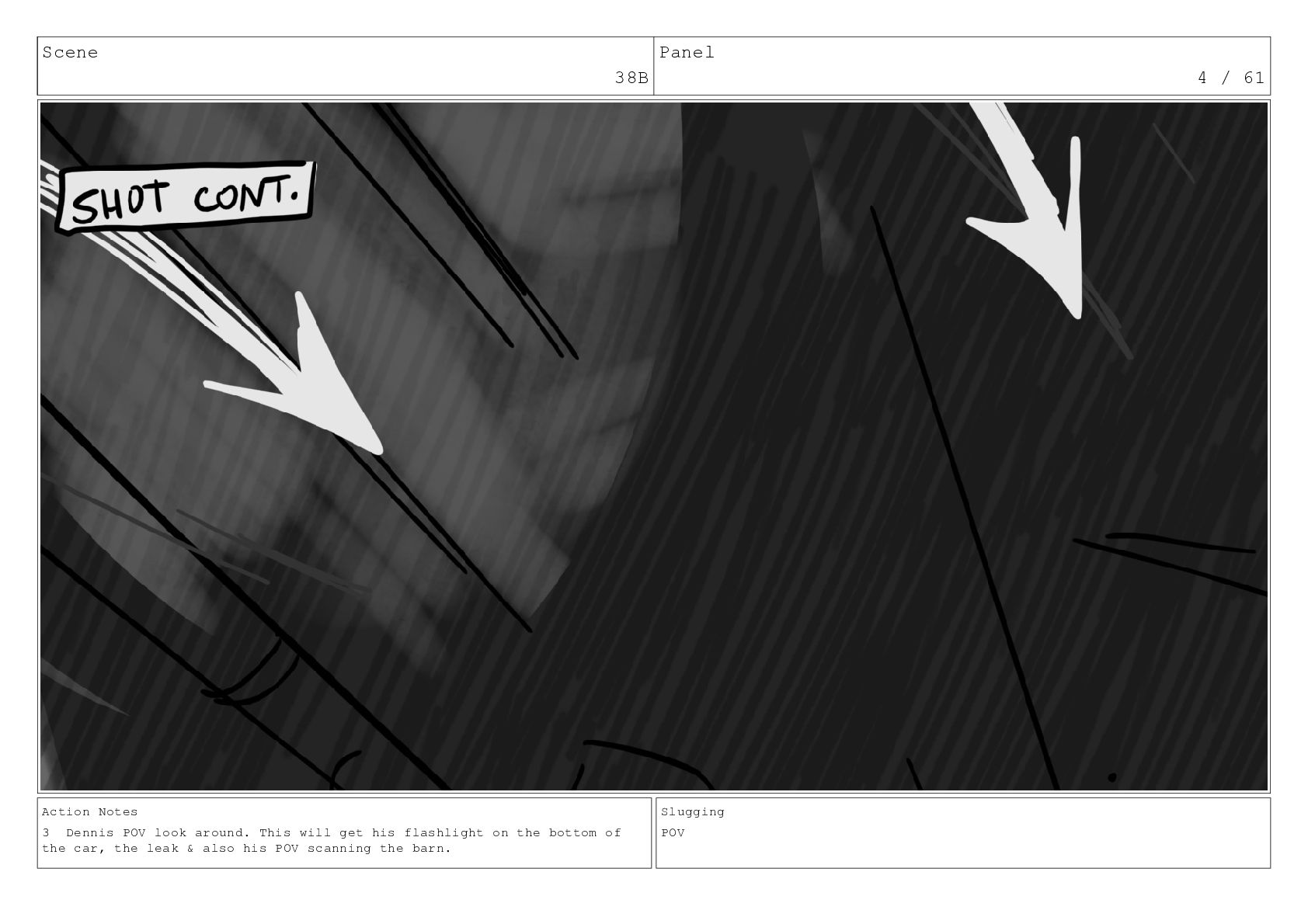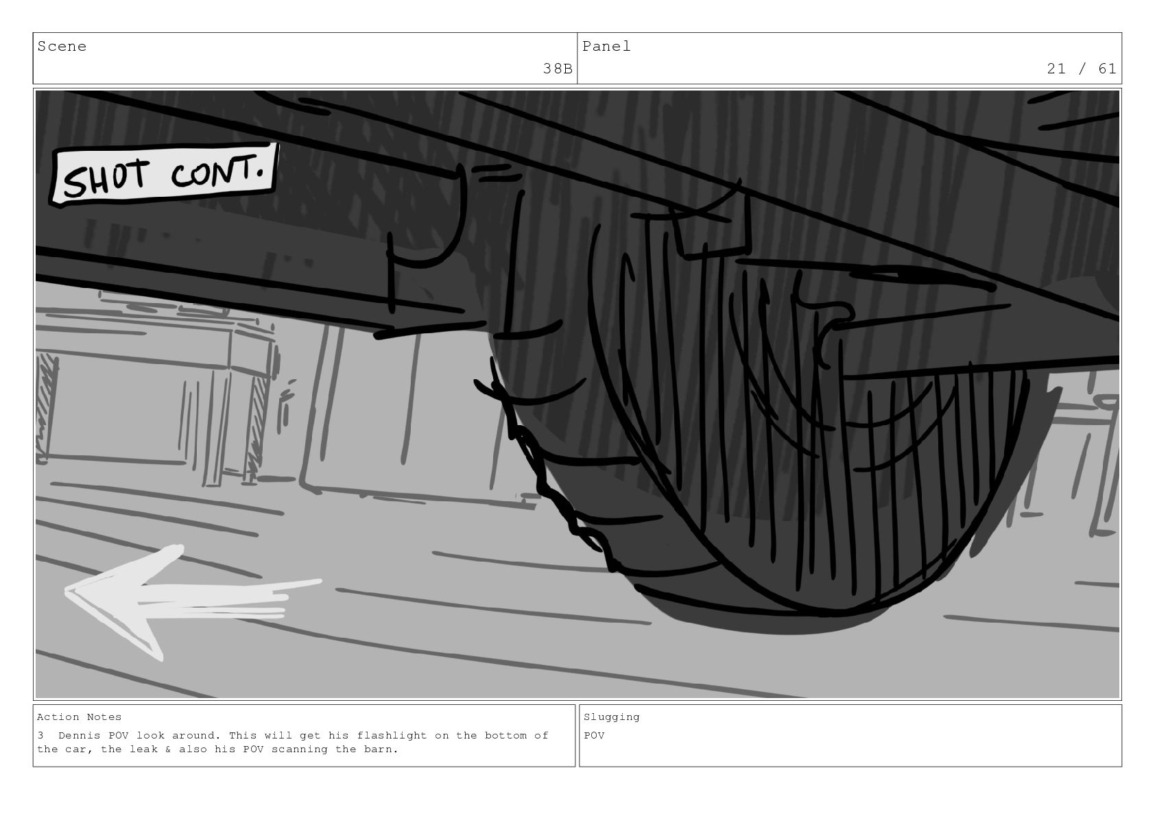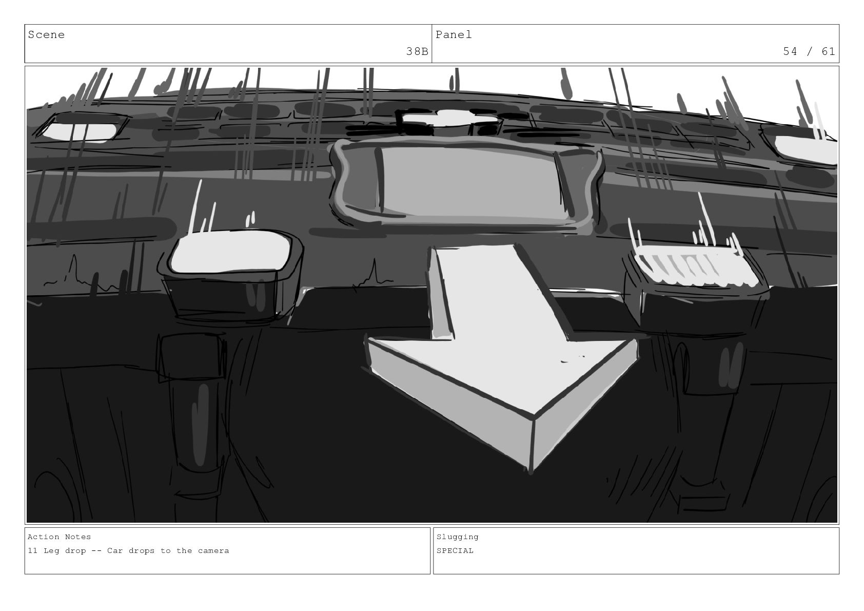 action and swap to a tighter lens after the door closes and again after he wrenches free from the hand. Slugging The camera moves with her as he rolls around under the car, his size changing MS --> CU