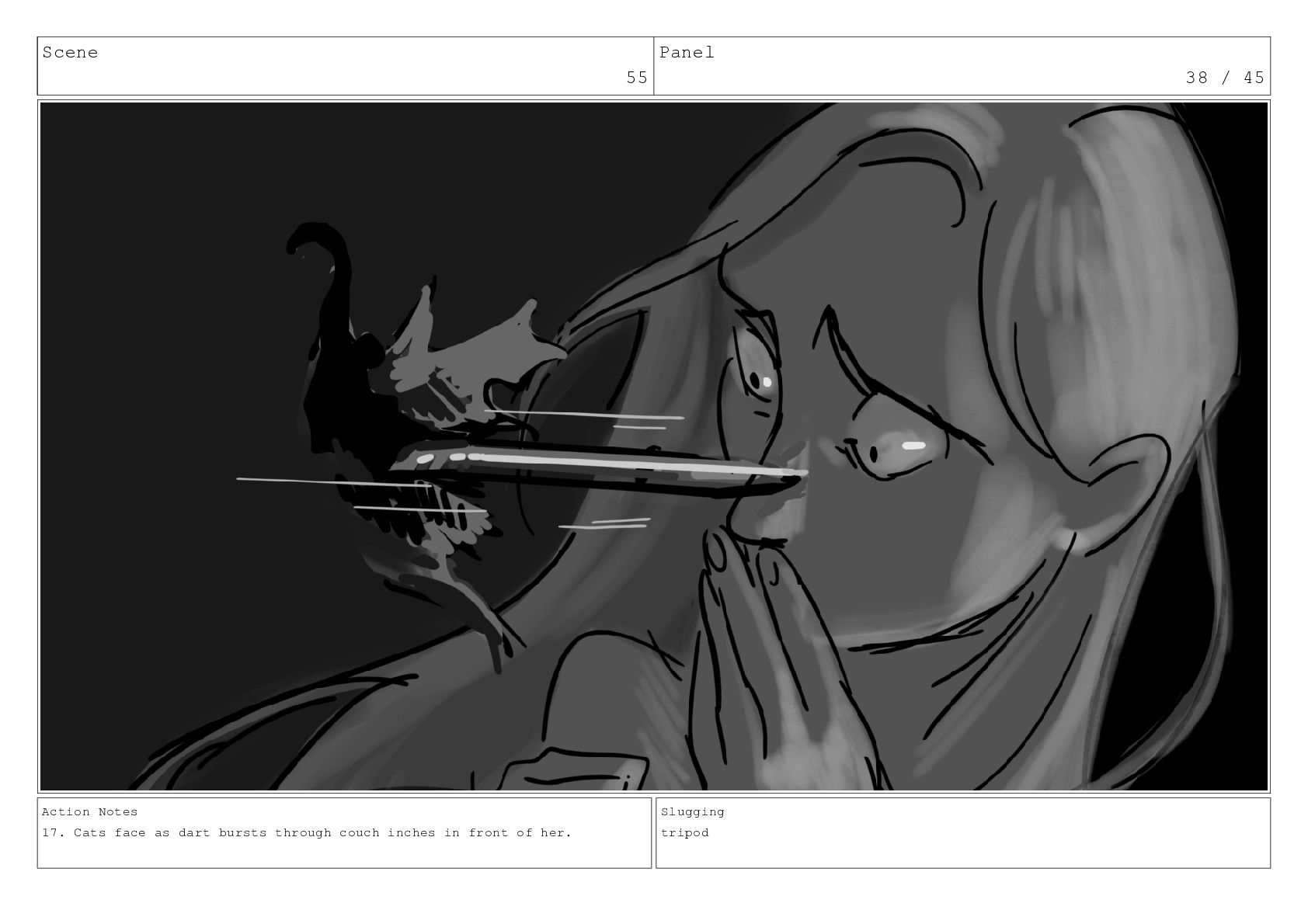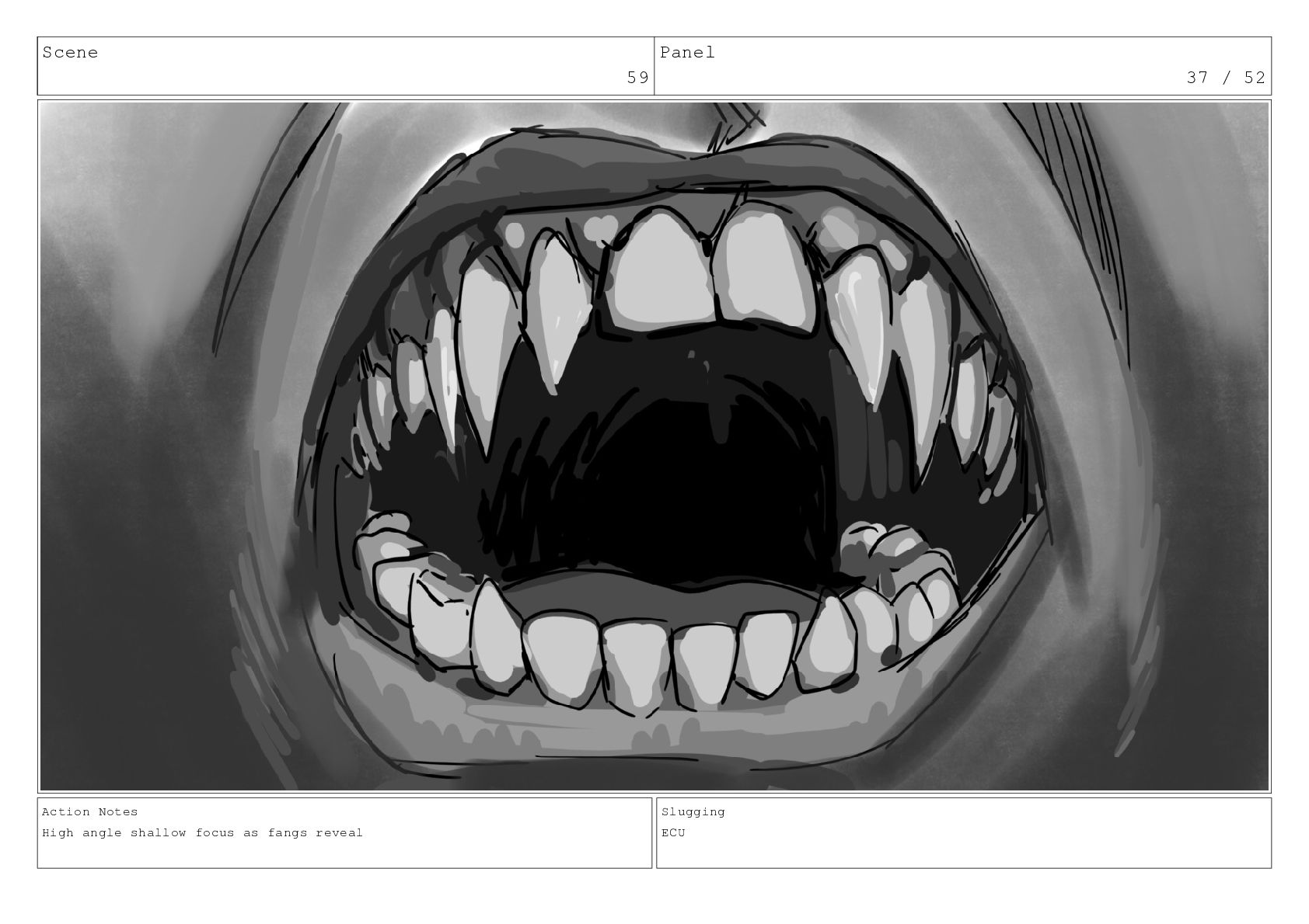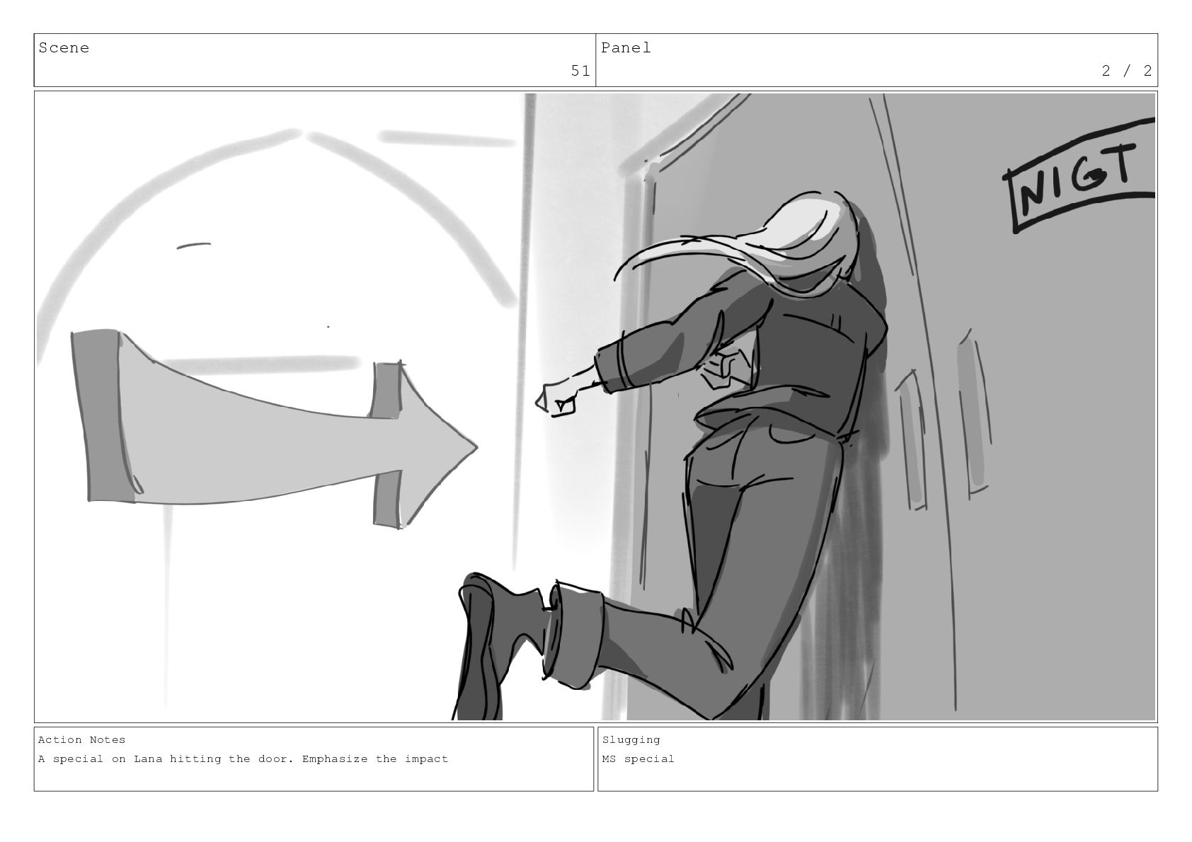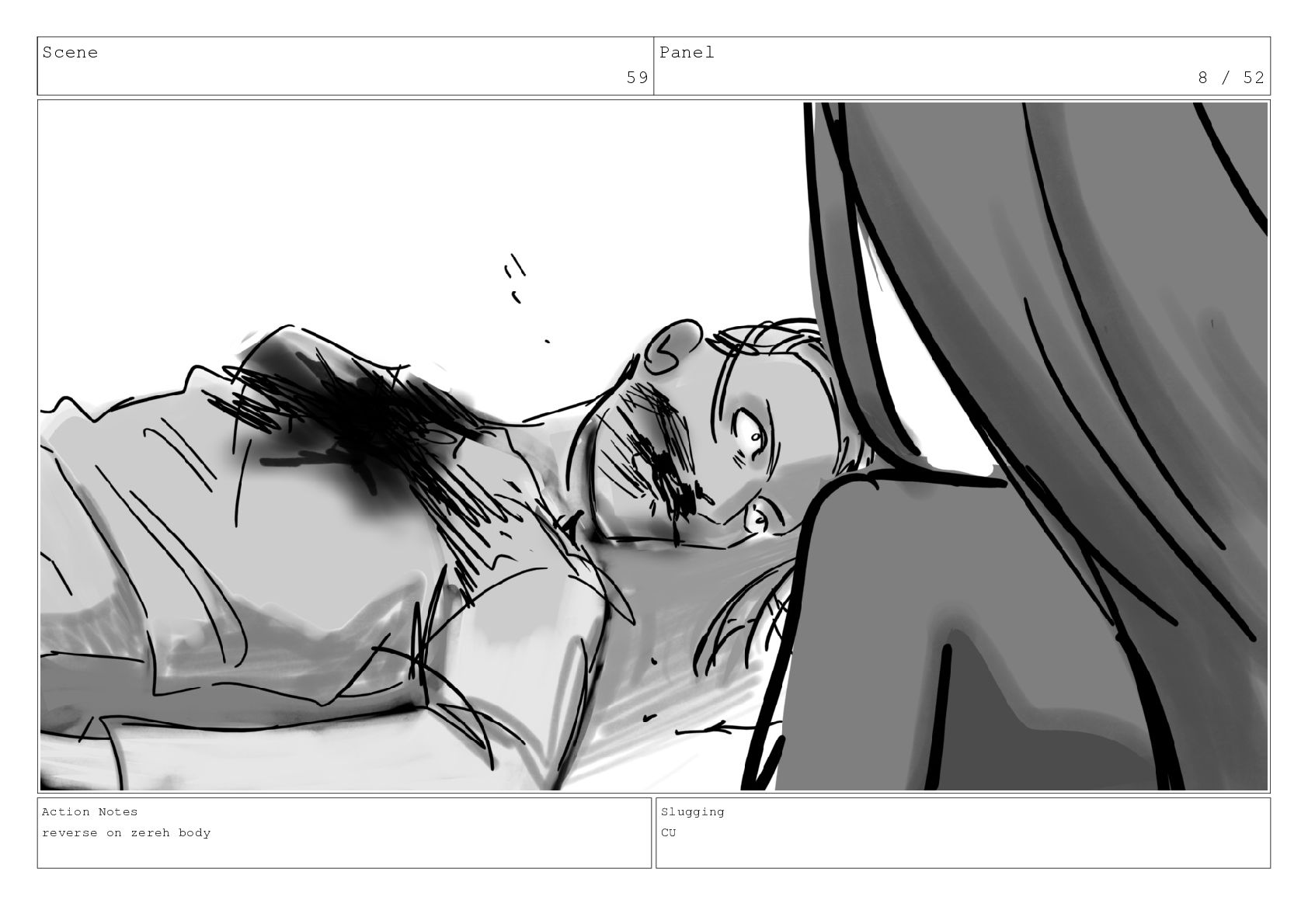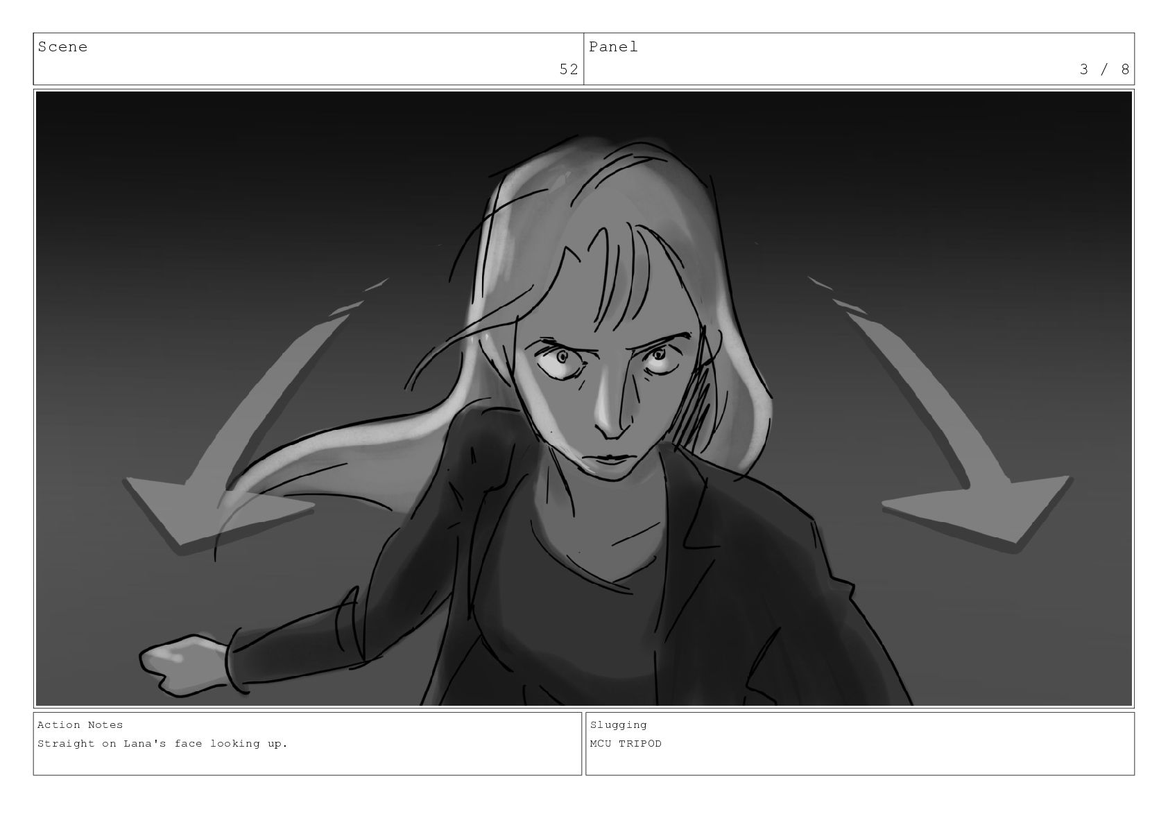 hits a prostetic head. in side profile or 3/4 front. The hatchet should be swinging from the opposite direction from which Lana entered and the blood spray in 53 should feel like a continuation of the hatchet's swing Slugging MS SPECIAL TRIPOD