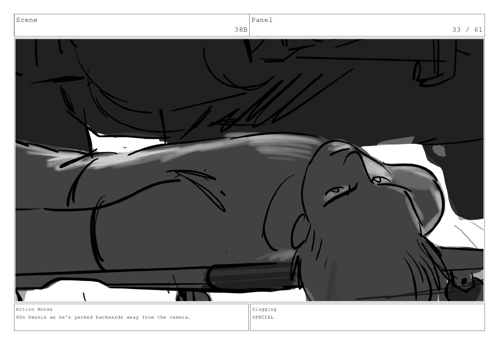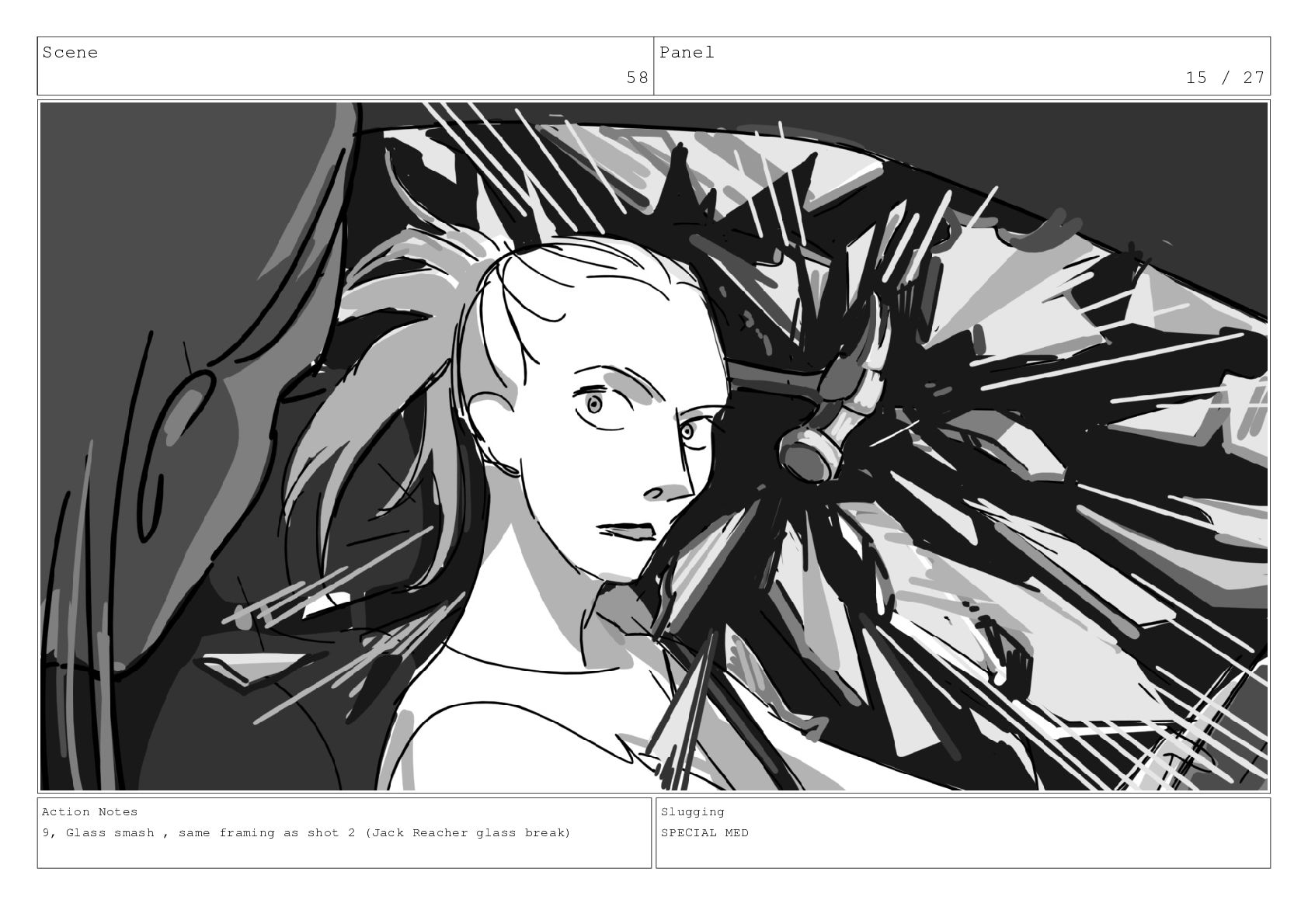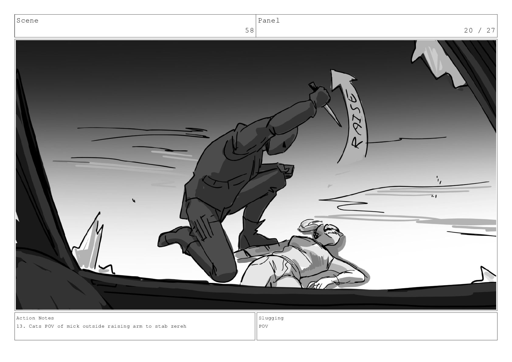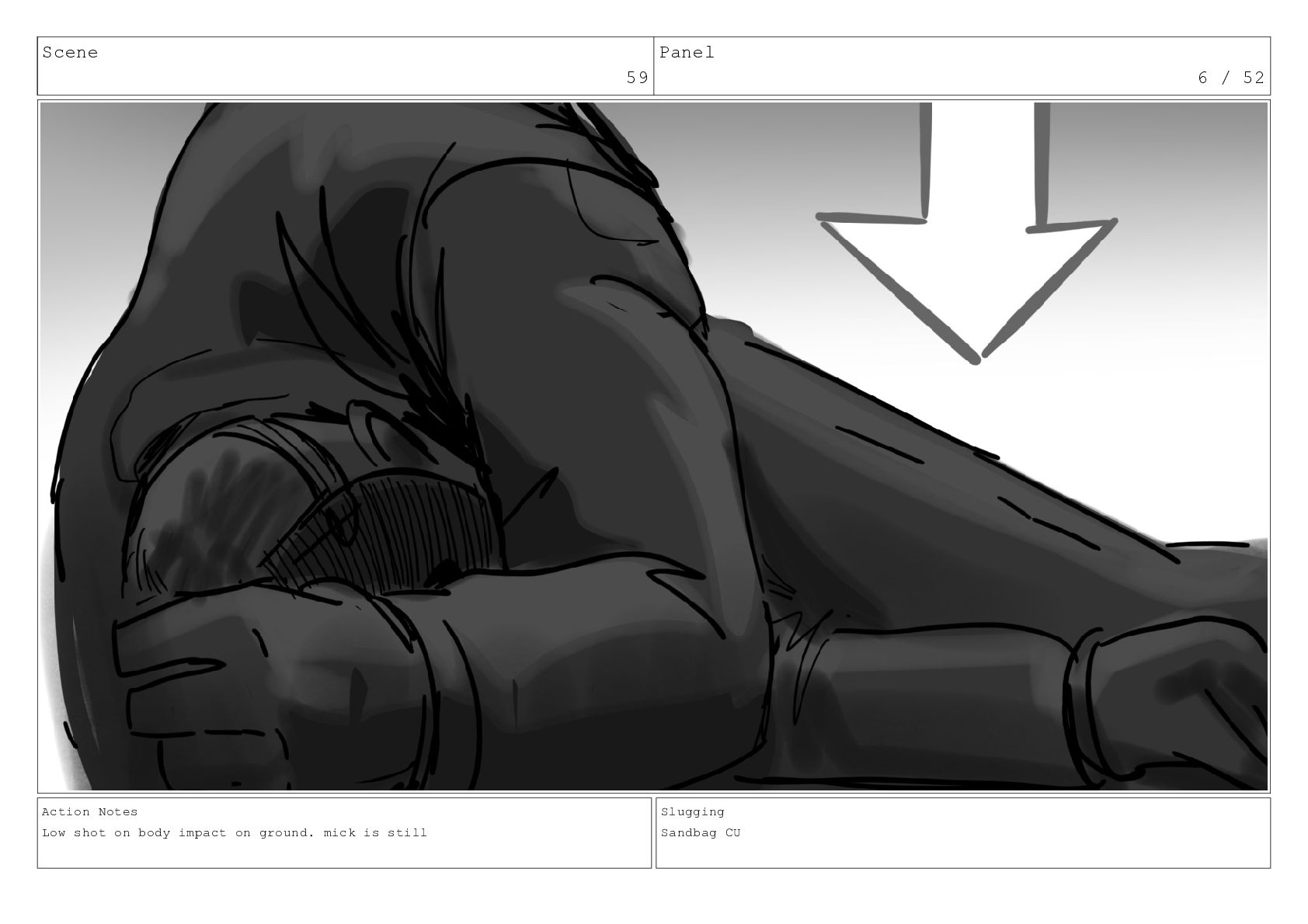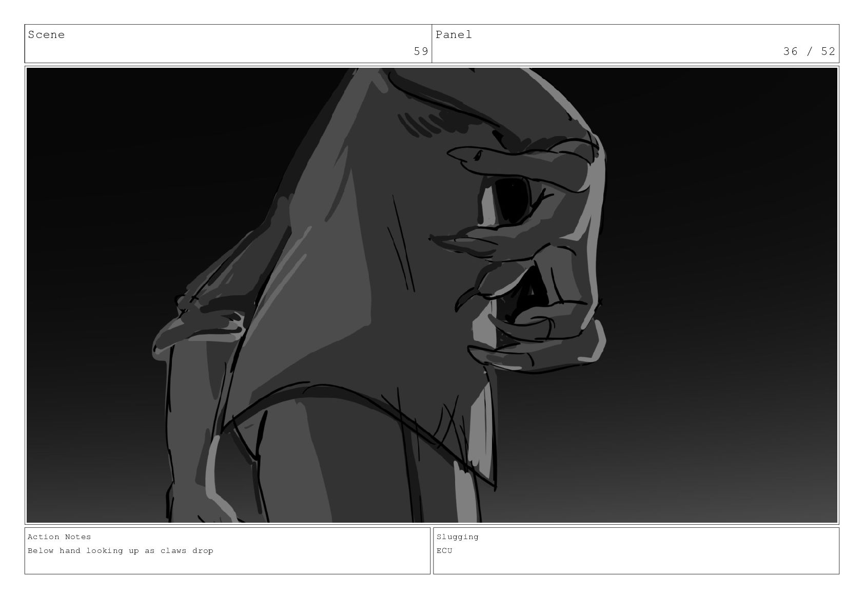 hits a prostetic head. in side profile or 3/4 front. The hatchet should be swinging from the opposite direction from which Lana entered and the blood spray in 53 should feel like a continuation of the hatchet's swing Slugging MS SPECIAL TRIPOD