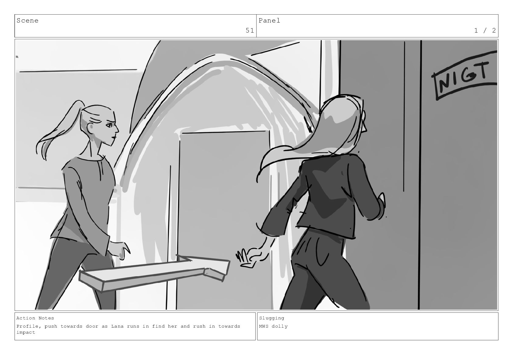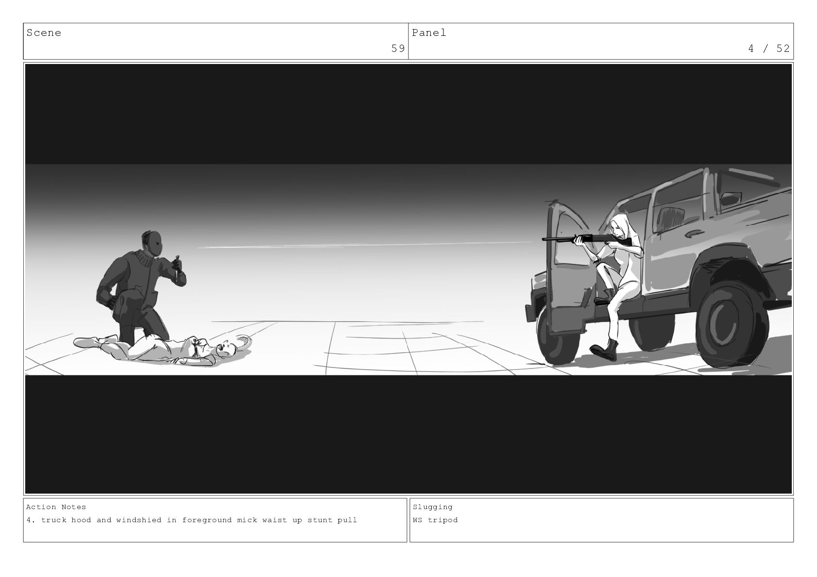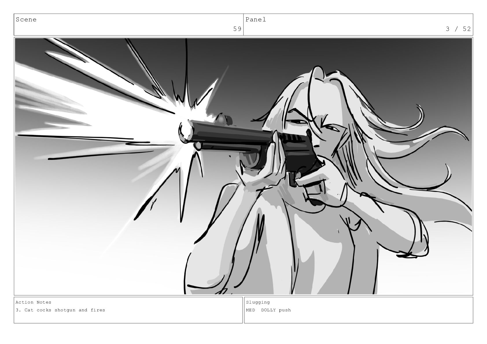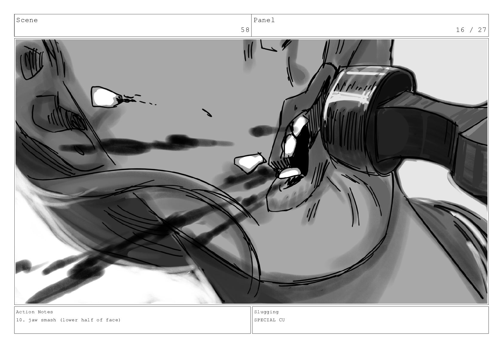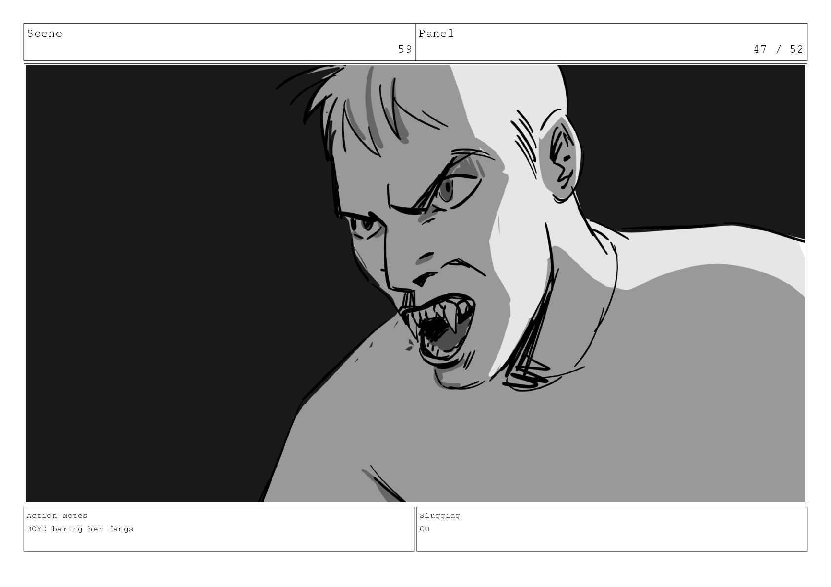 hits a prostetic head. in side profile or 3/4 front. The hatchet should be swinging from the opposite direction from which Lana entered and the blood spray in 53 should feel like a continuation of the hatchet's swing Slugging MS SPECIAL TRIPOD