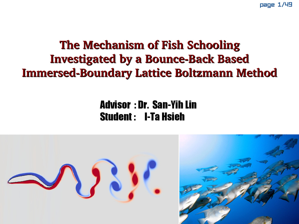 To study the problem whether there is any hydrodynamical function in fish schooling, an bounce-back based immersed-boundary lattice Boltzmann method was developed to cope with the moving boundary problem. A method to decompose the force into shear and normal force by momentum exchange in lattice Boltzmann method is provided. This algorithm performs as well as the accuracy of the theoretical analysis in stationary-boundary test, and the characteristics of the non-dimensional relaxation time τ is also discovered. In low Reynolds number flow, the results by the current method are comparable to the former experiments. Under the proposed numerical scheme, in two-dimensional fish schooling we proposed a new mechanism that infers the following fish just find the best place to follow by, instead of to arrange themselves in the regular position.