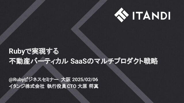 Rubyで実現する 不動産バーティカル SaaSのマルチプロダクト戦略 @Rubyビジネスセミナー 大阪 2025/02/06 イタンジ株式会社 執行役員CTO 大原 将真