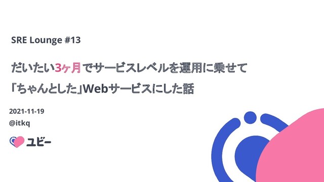 だいたい3ヶ月でサービスレベルを運用に乗せて 「ちゃんとした」Webサービスにした話 2021-11-19 @itkq SRE Lounge #13
