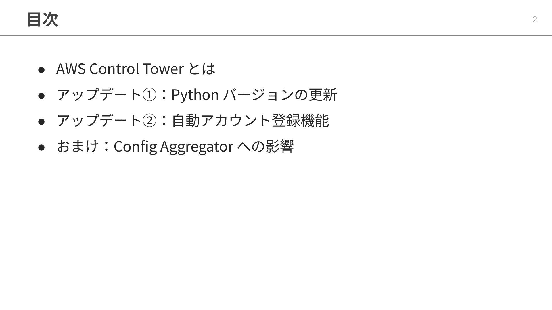 ⽬次 2 • AWS Control Tower とは • アップデート①:Python バージョンの更新