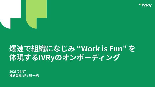 爆速で組織になじみ “Work is Fun” を 体現するIVRyのオンボーディング 2026/04/07 株式会社IVRy 城 ⼀統