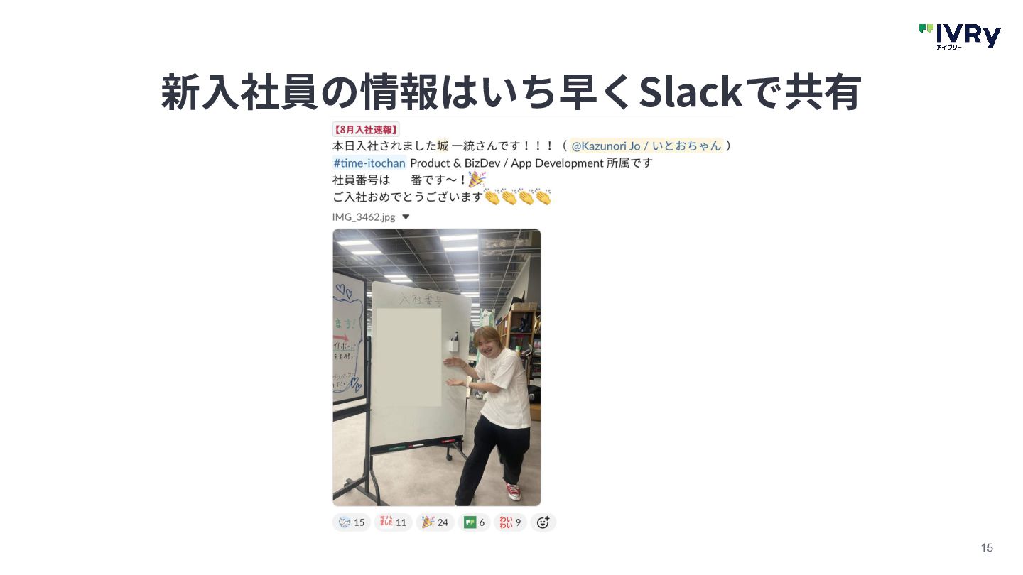 15 新⼊社員の情報はいち早くSlackで共有