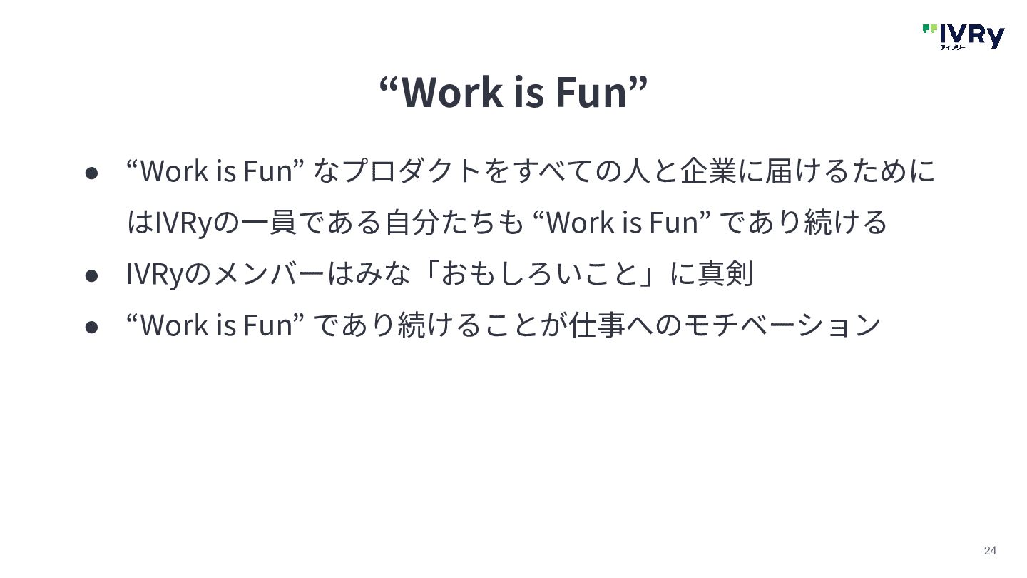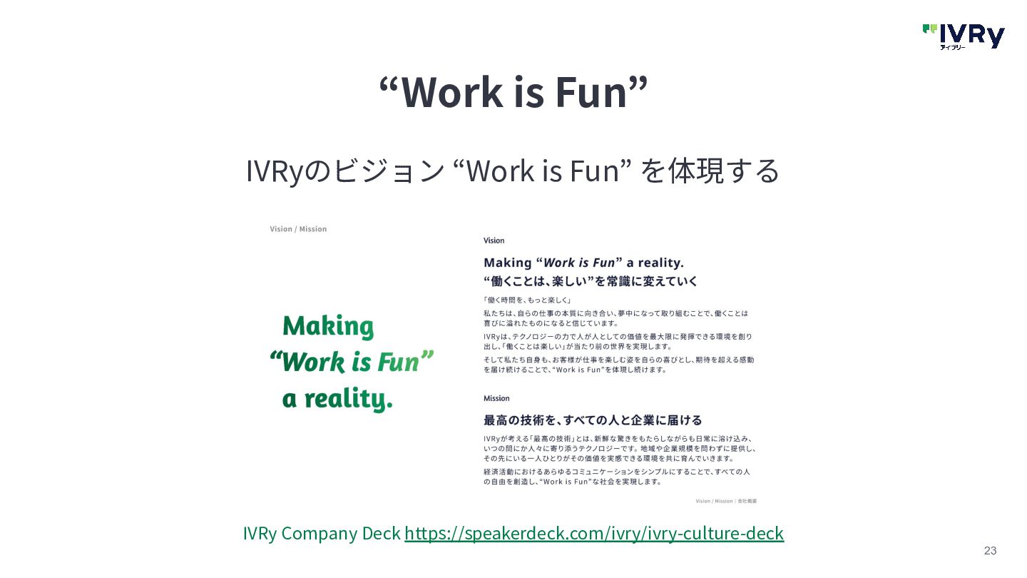 23 “Work is Fun” IVRyのビジョン “Work is Fun” を体現する IVRy