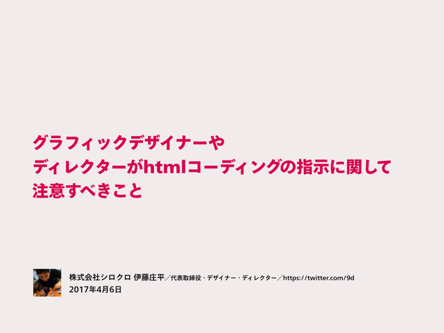 άϥϑΟοΫσβΠφʔ σΟϨΫλʔ͕IUNMίʔσΟϯάͷࢦࣔʹؔͯ͠ ҙ͖͢͜ͱ גࣜձࣾγϩΫϩҏ౻ঙฏʗදऔకɾσβΠφʔɾσΟϨΫλʔʗIUUQTUXJUUFSDPNE ݄