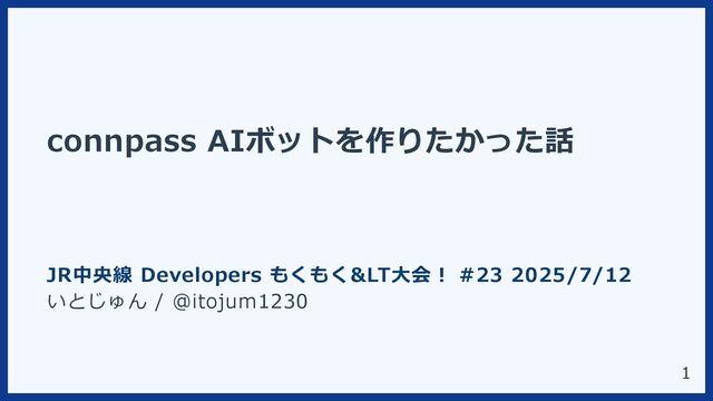connpass AIボットを作りたかった話 JR中央線 Developers もくもく<大会! #23 2025/7/12 いとじゅん / @itojum1230