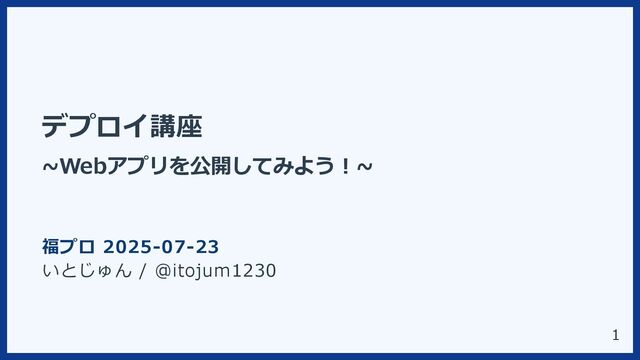 デプロイ講座 ~Webアプリを公開してみよう!~ 福プロ 2025-07-23 いとじゅん / @itojum1230 1