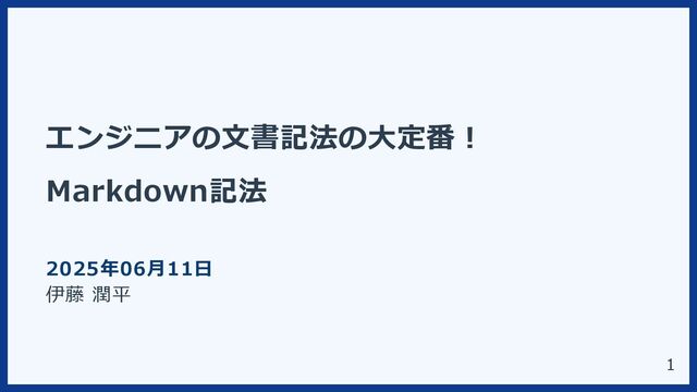 エンジニアの文書記法の大定番! Markdown記法 2025年06月11日 伊藤 潤平 1