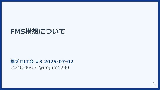 FMS構想について 福プロLT会 #3 2025-07-02 いとじゅん / @itojum1230 1