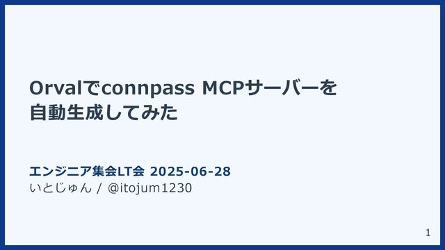 Orvalでconnpass MCPサーバーを 自動生成してみた エンジニア集会LT会 2025-06-28 いとじゅん / @itojum1230 1