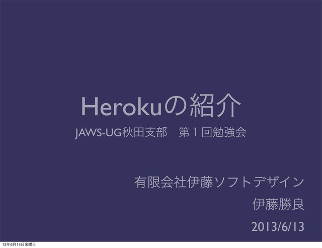 Herokuͷհ JAWS-UGळాࢧ෦ɹୈ̍ճษڧձ ༗ݶձࣾҏ౻ιϑτσβΠϯ ҏ౻উྑ 2013/6/13 136݄14༵ۚ
