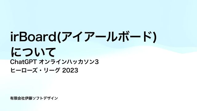 ༗ݶձࣾҏ౻ιϑτσβΠϯ JS#PBSE ΞΠΞʔϧϘʔυ ʹ͍ͭͯ $IBU(15ΦϯϥΠϯϋοΧιϯ ώʔϩʔζɾϦʔά