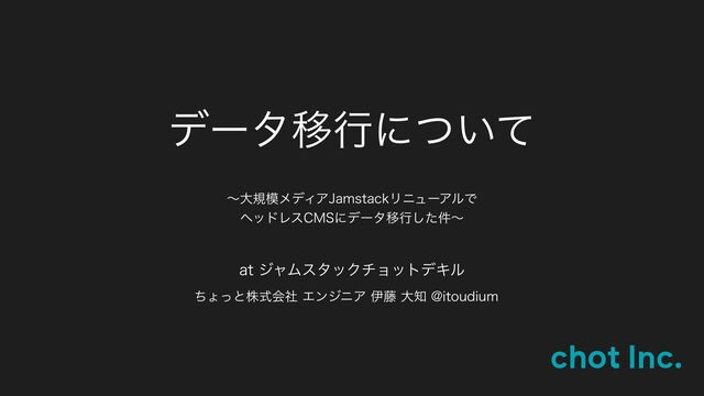 ちょっと株式会社では、最近、大型メディアをJamstackにリニューアルするプロジェクトを請け負いました。 その、Jamstackシステムの裏側、データ移行の部分について、実際の経験をお話しします。